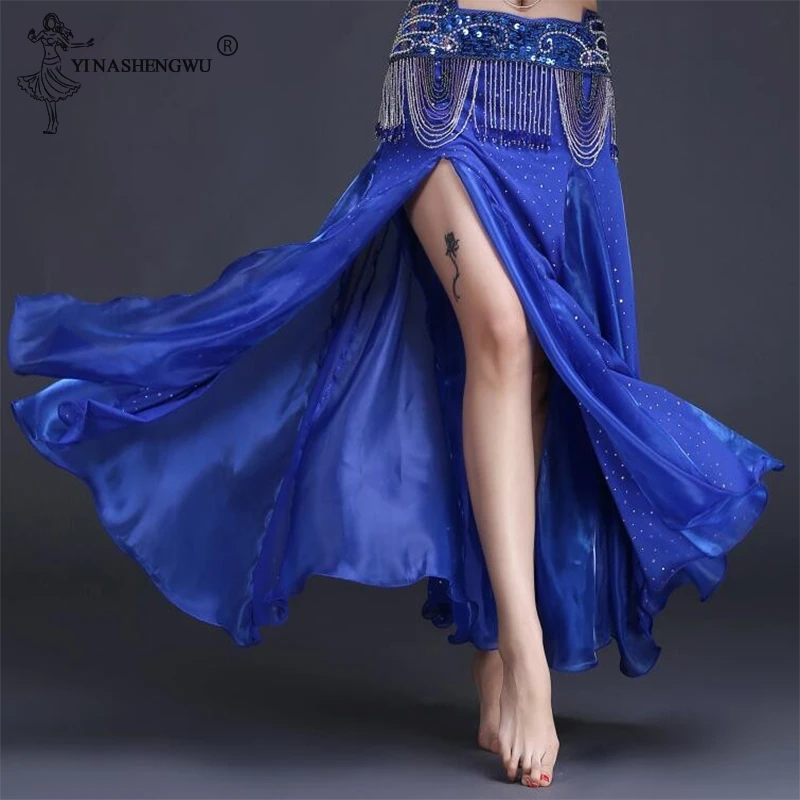 Живота юбка для танцев s Восточный двойной высокие разрезы юбка, костюм для танца живота для Для женщин юбка для танцев; Костюм (без ремня)
