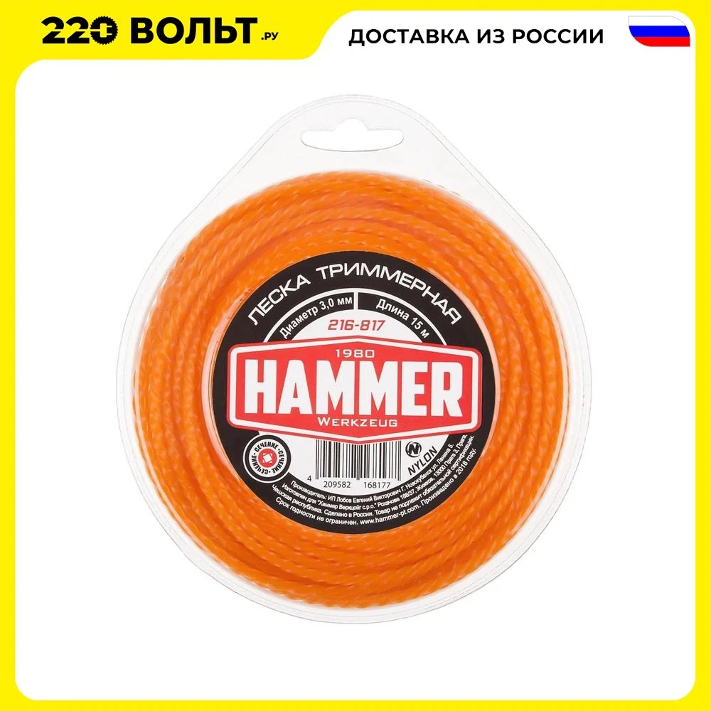 Леска триммерная Hammer 216-817 3.0мм 15м витой квадрат в блистере