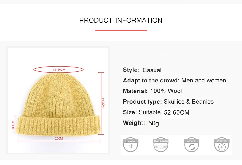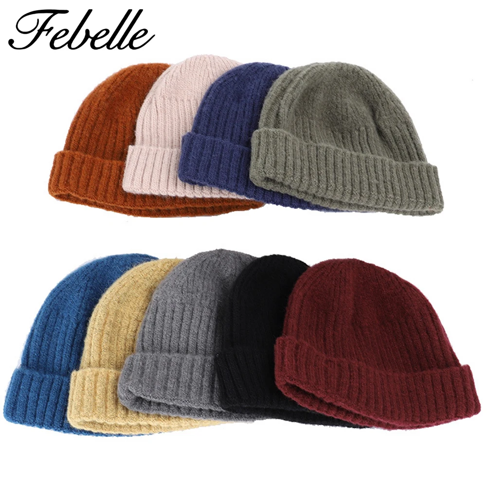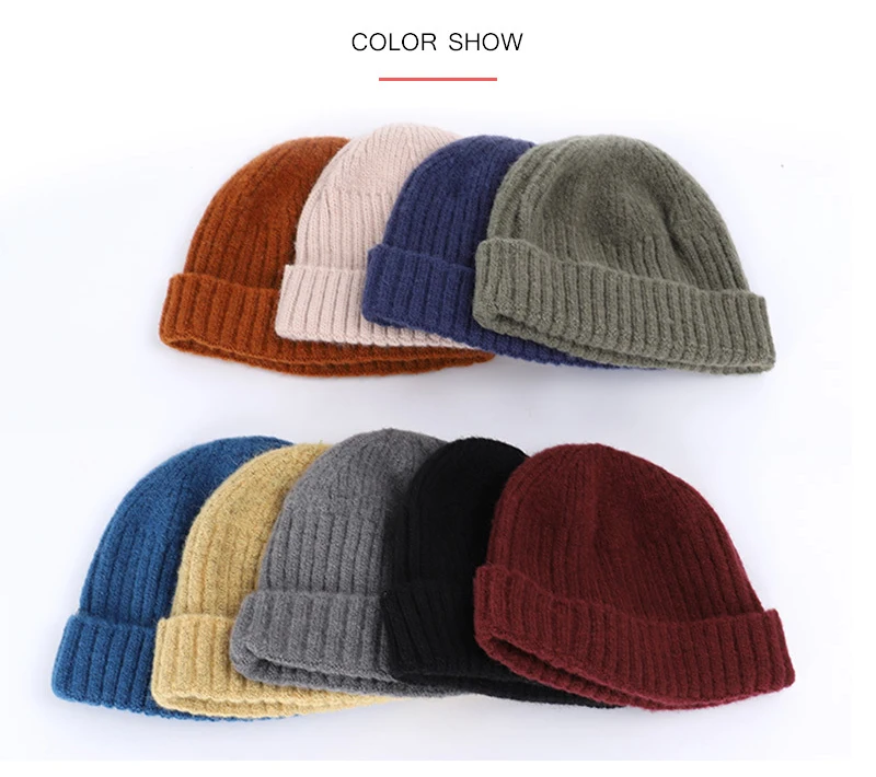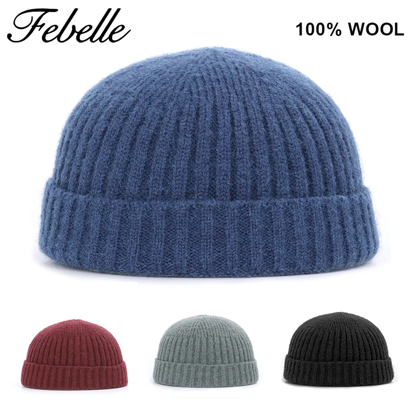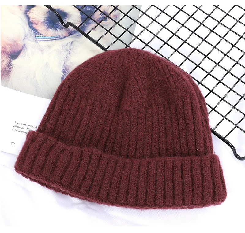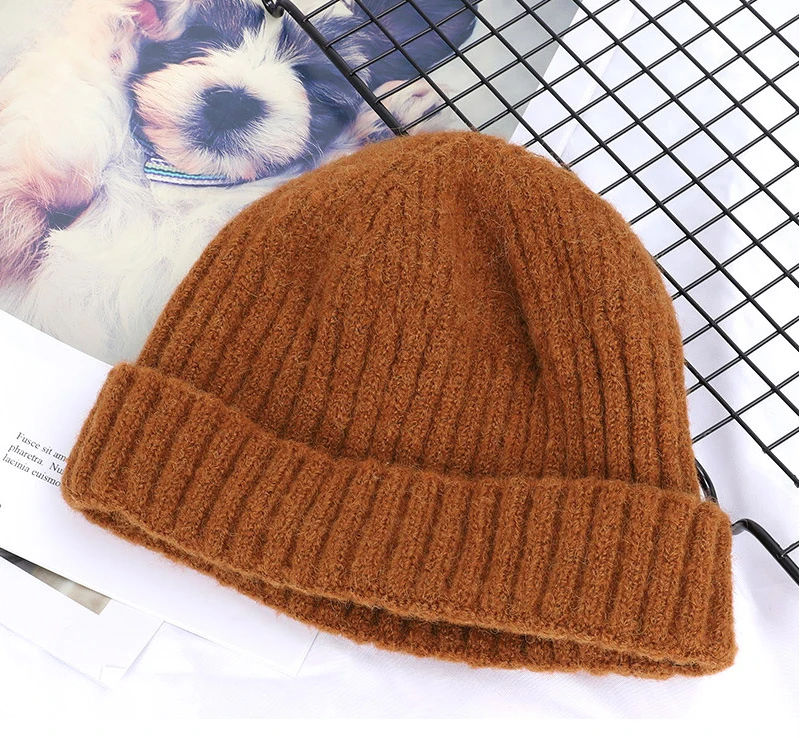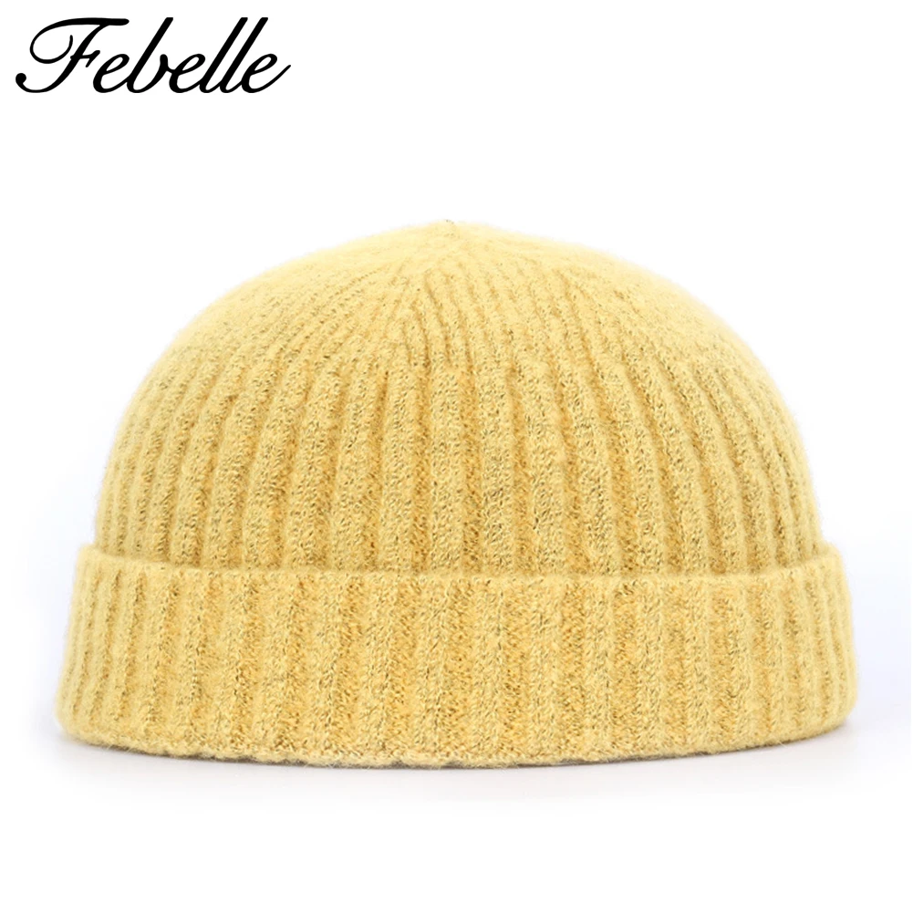Модная теплая вязаная шапка без козырька, мужские облегающие шапки,...