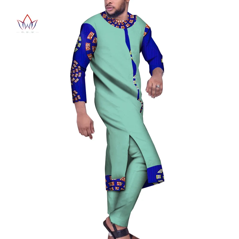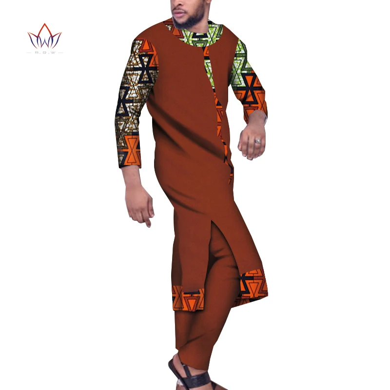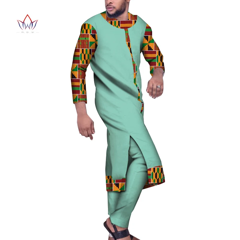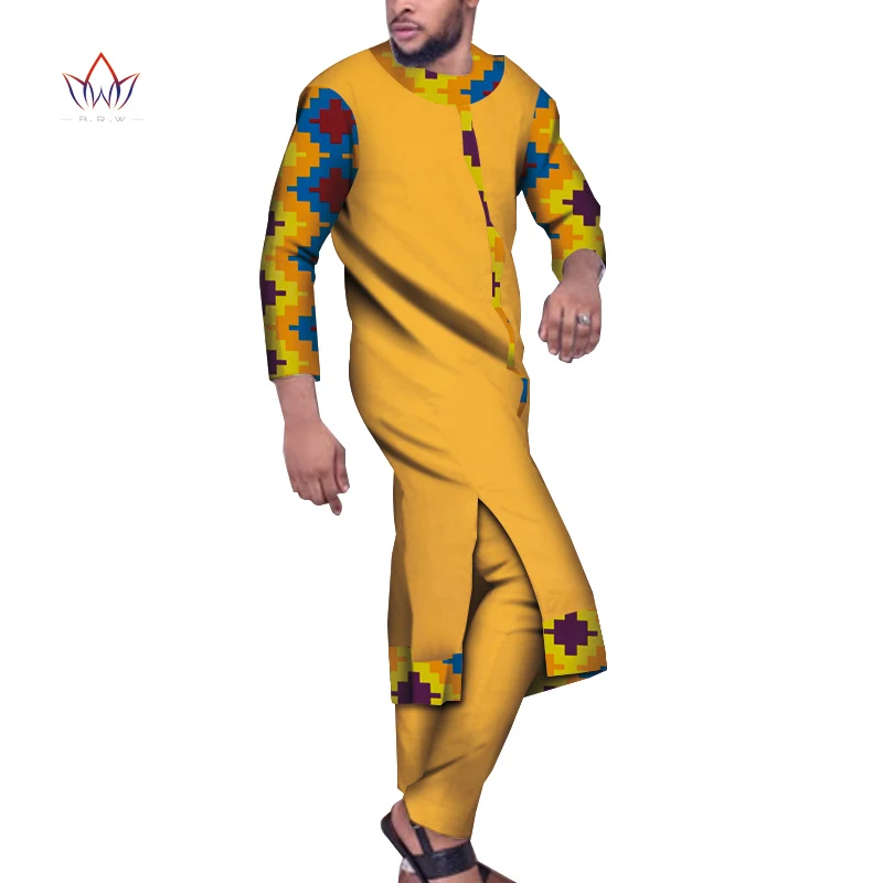 Африканский стиль 2021, индивидуальные брючные костюмы для мужчин, длинная Мужская рубашка, модная традиционная африканская одежда WYN1066
