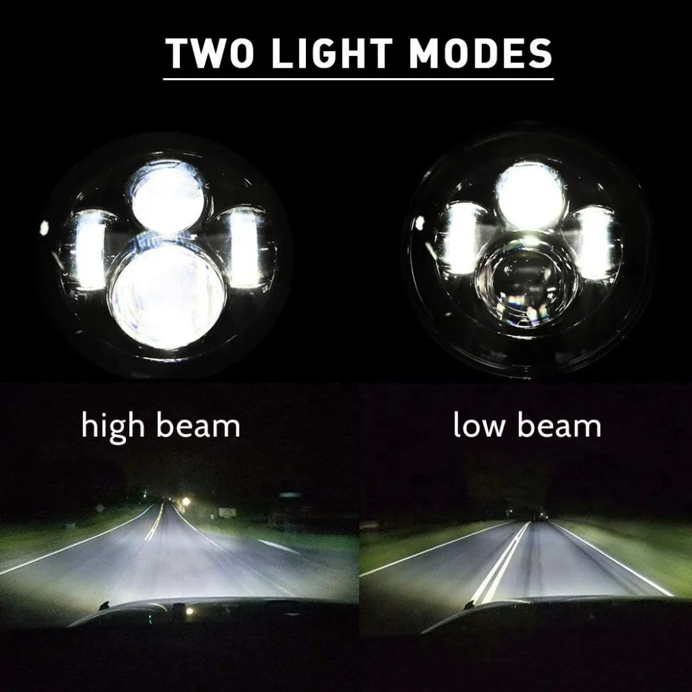 Посылка включает:1 шт. x 7 дюймовые светодиодные фары(Инструкция по установке не входит в комплект)