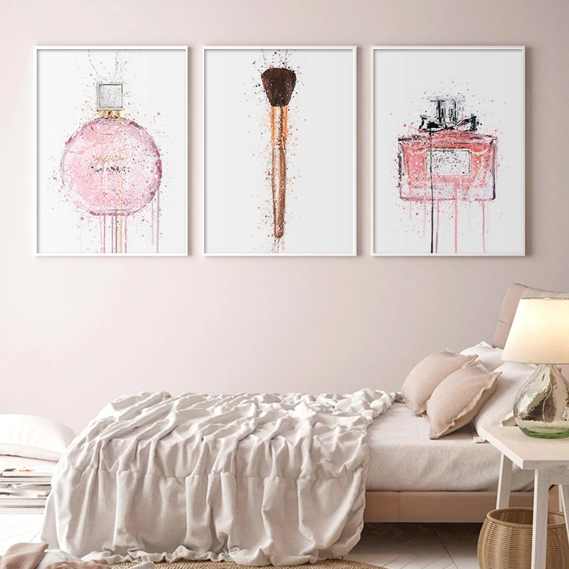 Акварельные духи, постеры и принты для макияжа, красота, губы, настенный художественный принт, картины с губной помадой, украшение для спальни, домашний декор