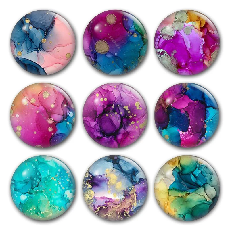 Акварельный стеклянный кабошон, Радужное круглое фото, демонстрация Кабошоны, плоская задняя часть, кольцо сделай сам, браслеты, кольца, ювелирные изделия