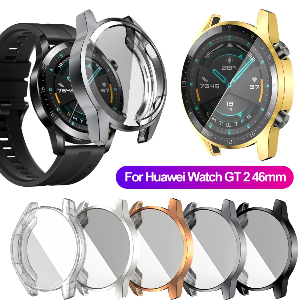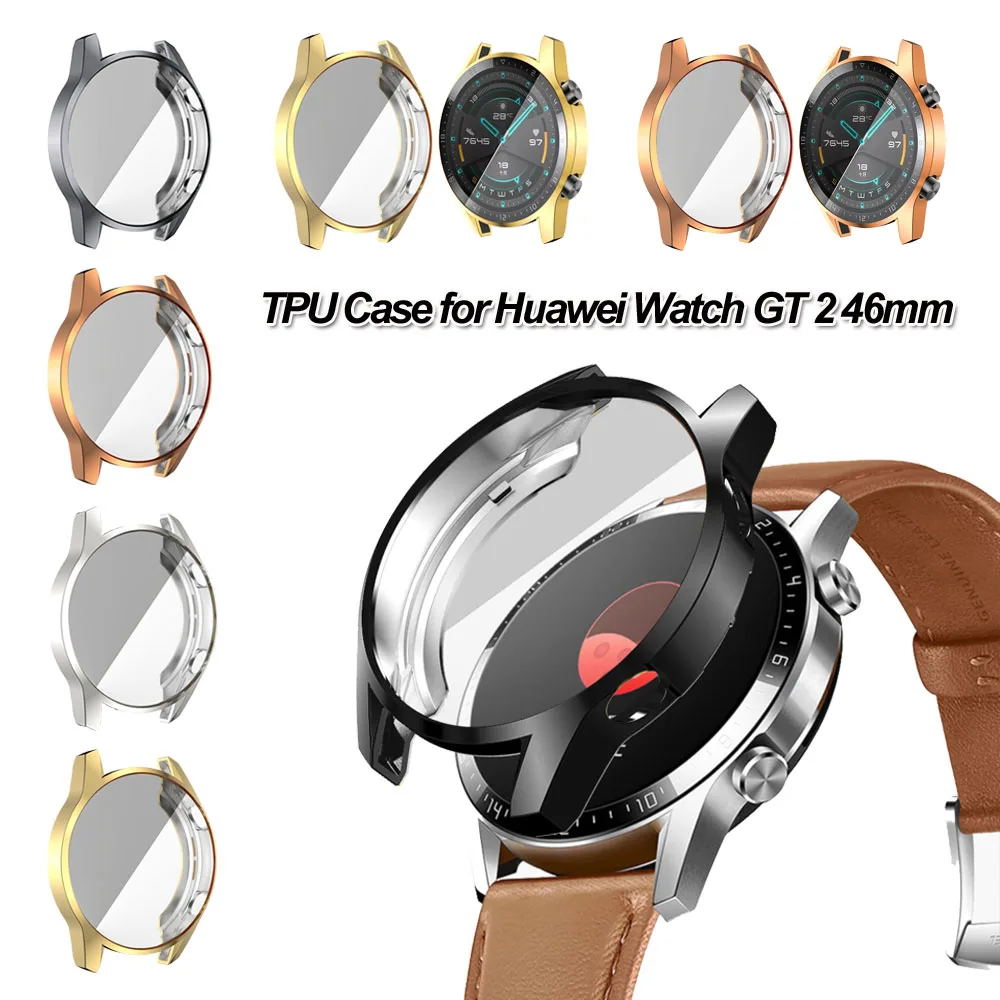 Чехол для часов из ТПУ с гальваническим покрытием 4246 мм, полное покрытие, Защита экрана для Huawei Watch GT 2 46 мм, чехол из ТПУ с гальваническим покрытием