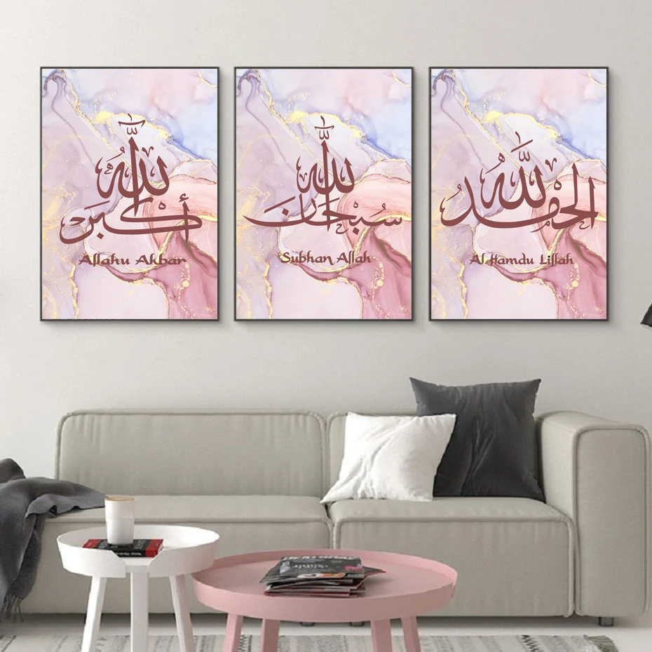 Плакаты и принты для спальни, розовые, аятул КУРСИ, исламские насте...