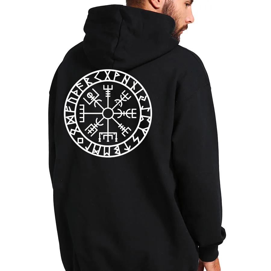 Viking исландский вегвизир компасы Рунический амулет толстовки Черный, серый цвет с капюшоном бархатная теплая мягкая куртка с капюшоном