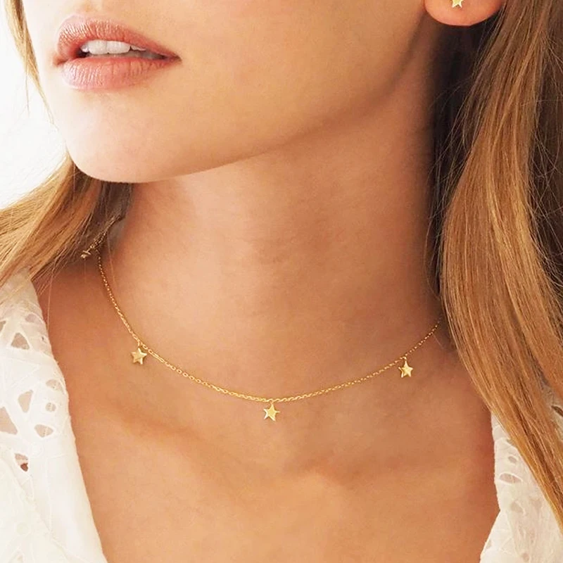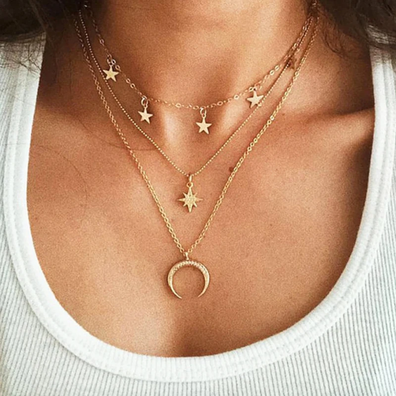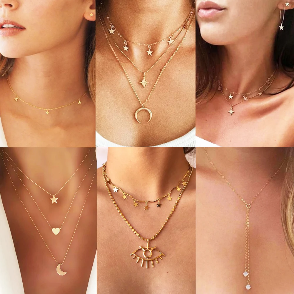 Винтажное многослойное ожерелье с подвесками для женщин, модный чокер золотого цвета, месяц, звезды, колье, ювелирное изделие