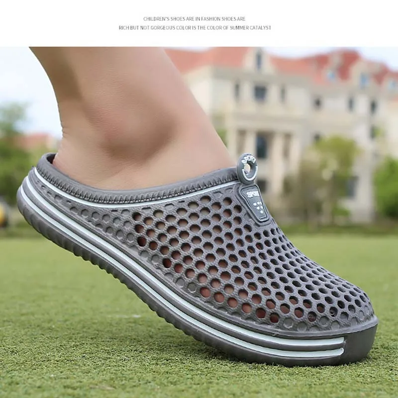 Шлепанцы мужские с перфорацией, дышащие пляжные сандалии, без засте...