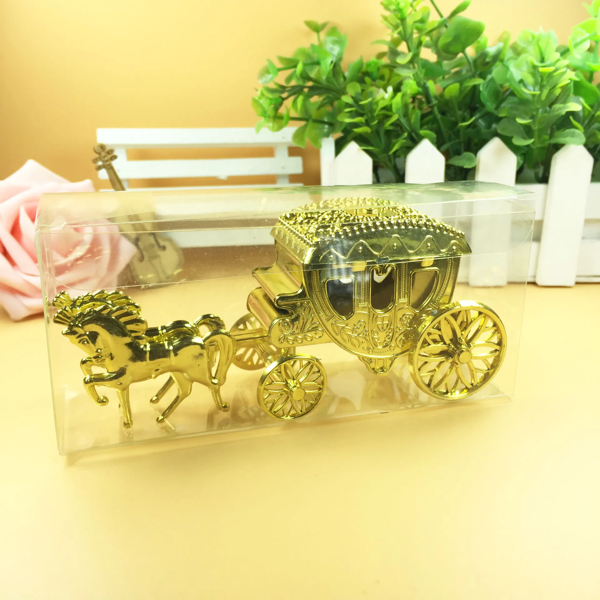 12 шт.лот коробка Золушка королевская каретка Золотая свадебная коробка для конфет Подарочная коробка маленькая пластиковая коробка для украшения вечевечерние