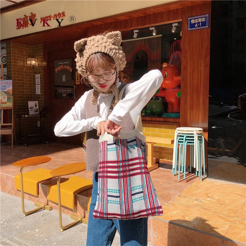Новая вместительная Корейская версия Super Fire Ins, Студенческая Портативная Сумка-тоут из шерсти, Женская тканевая сумка через плечо, эко-сумки, шоппер