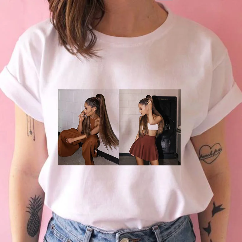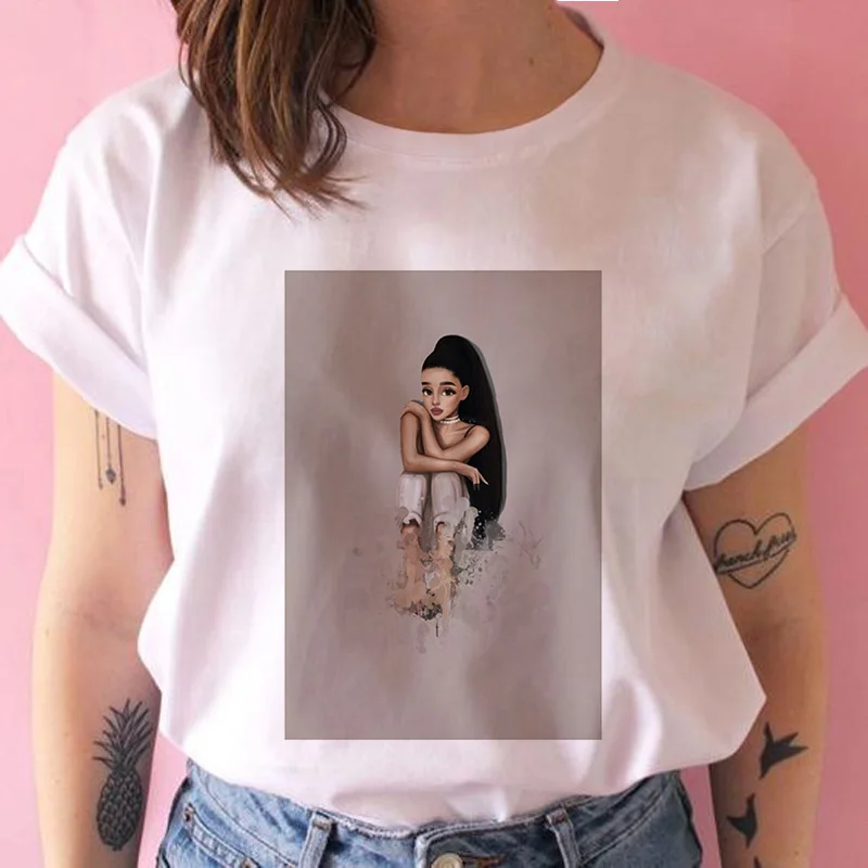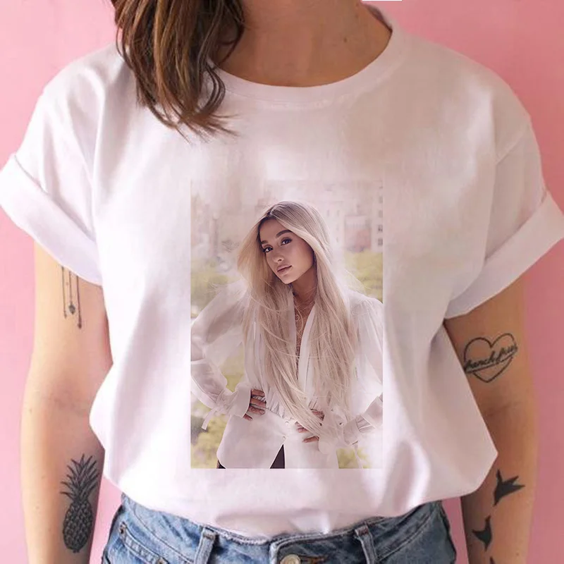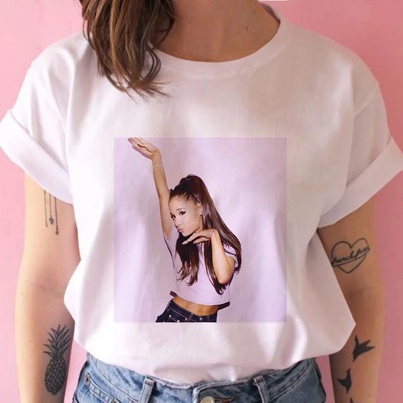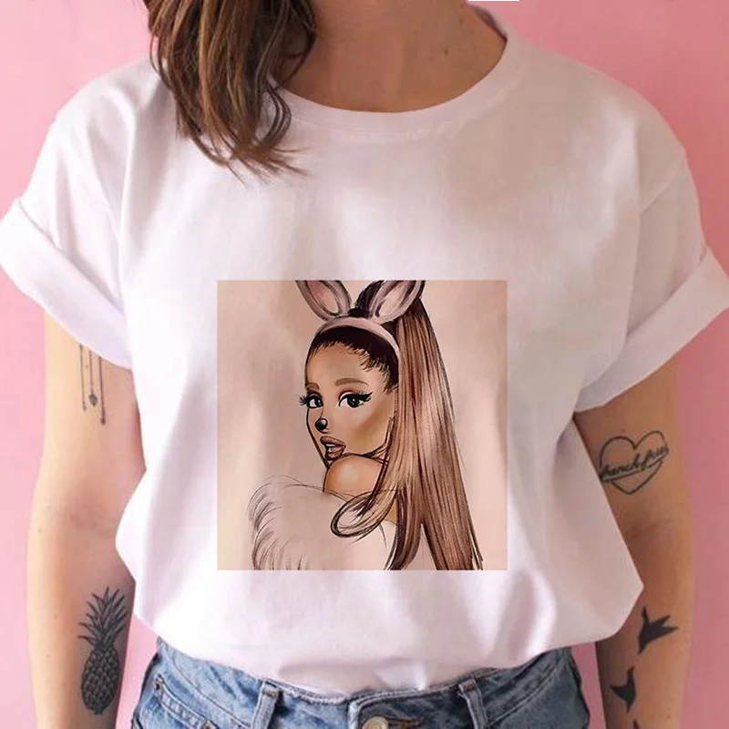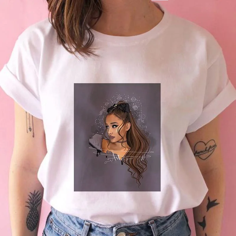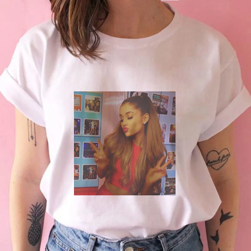 Футболка женская с коротким рукавом, повседневный Свободный Топ с принтом Ариана и Гранде, уличная одежда в стиле Харадзюку, большие размеры, S-2XL, на лето