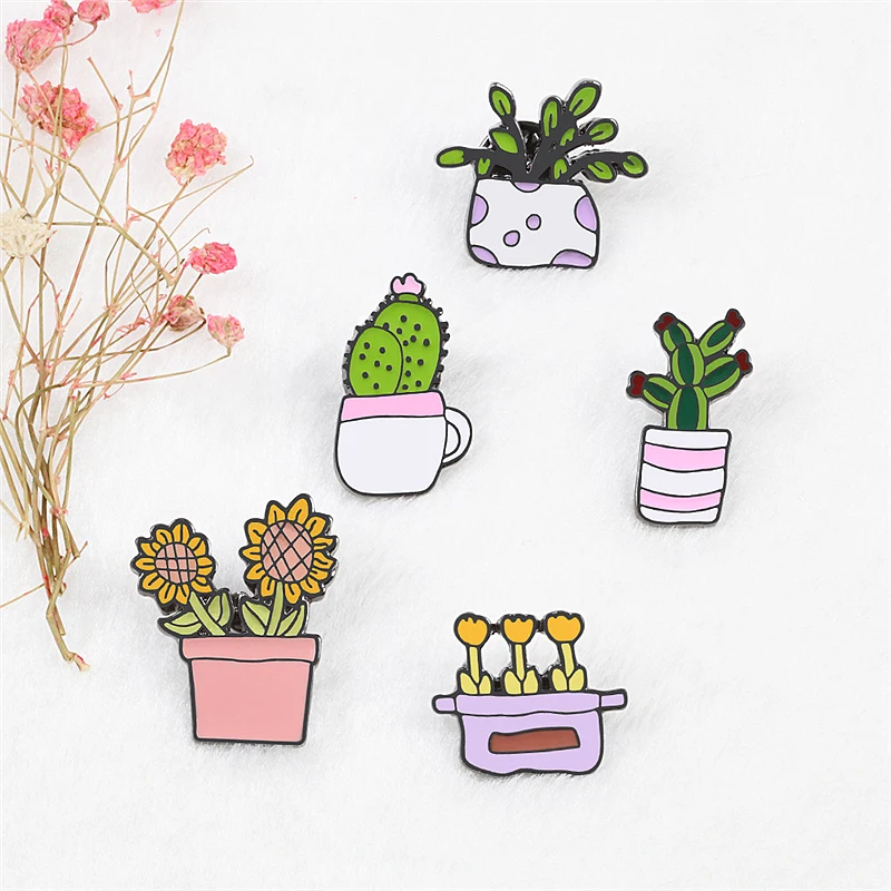 Милые Броши в форме цветка кактуса в горшке, Мультяшные модные мини значки на сумку, эмалированная булавка, подарки для детей, куртки, булавки для лацкана, коллекция
