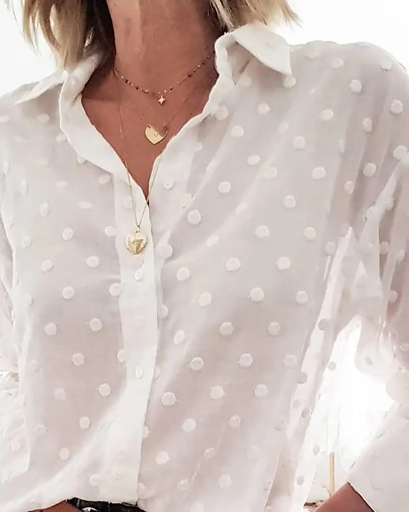 Женская офисная блузка в горошек, с длинным рукавом и V-образным вырезом
