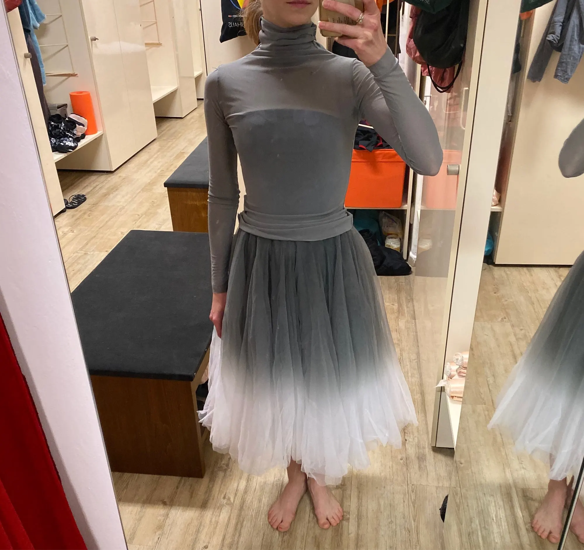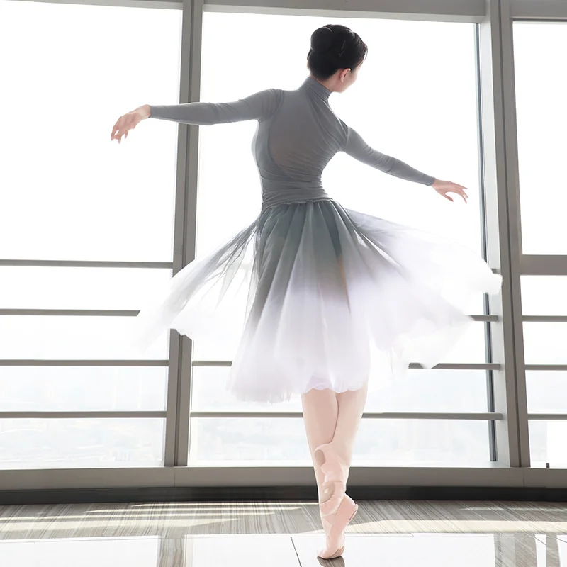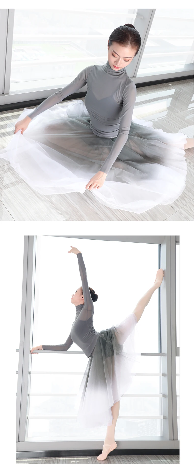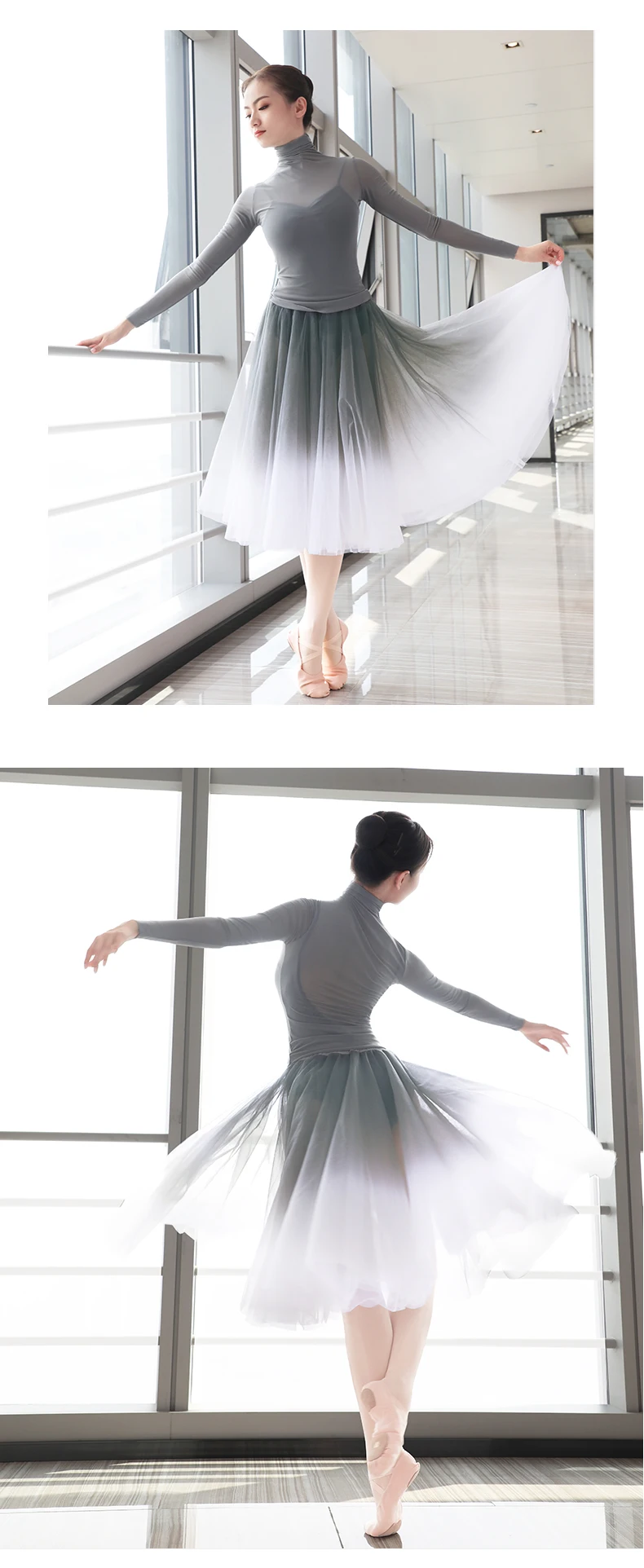 Женские Балетные купальники, танцевальные топы, юбки, костюмы для взрослых, мягкие, градиентные, серые, платье для балета, танцев