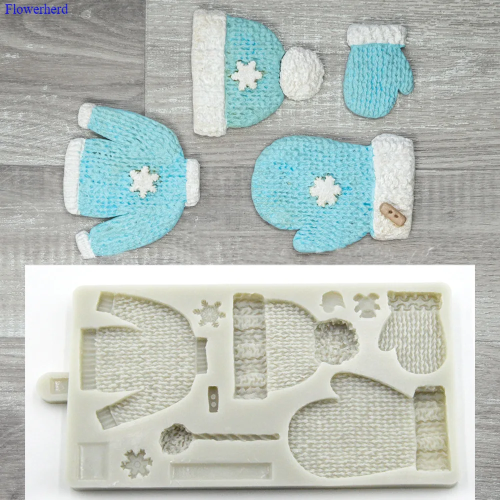 Силиконовая форма для выпечки, инструменты для украшения тортов из мастики шерсть, перчатки, детская одежда, снежинки