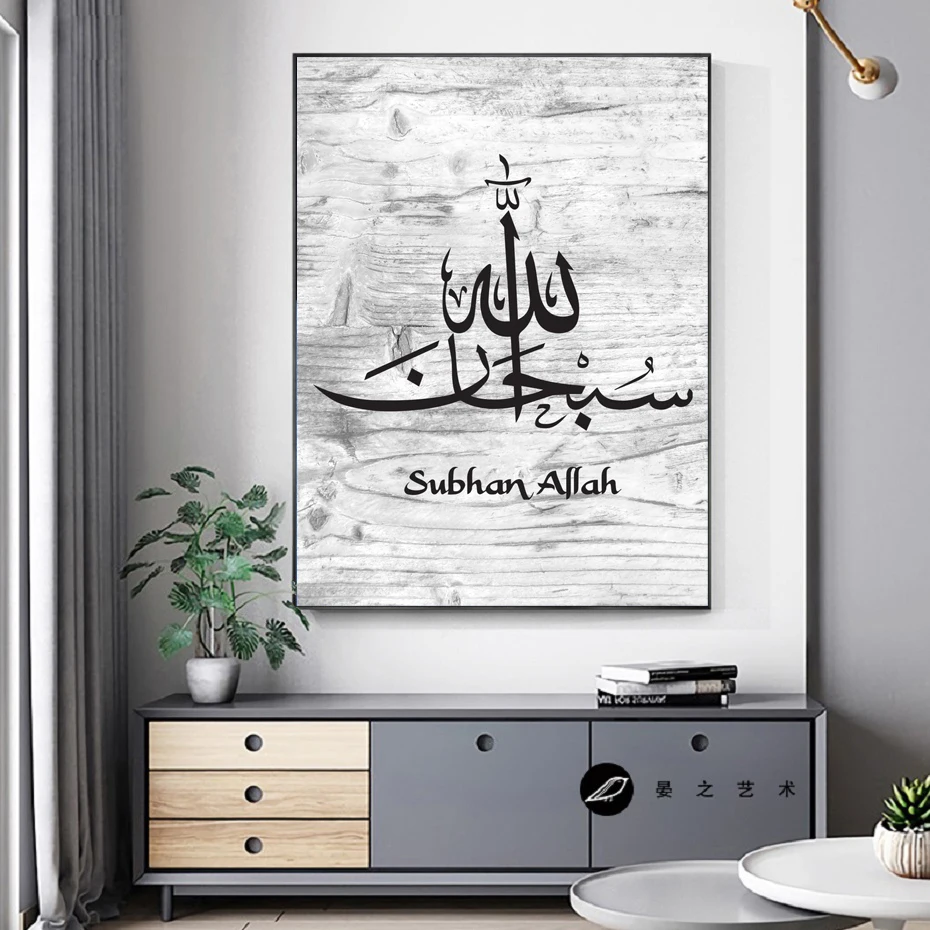 Плакаты для спальни, черно-белые, субханаллах, мусульманская каллиг...