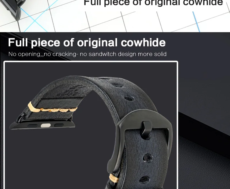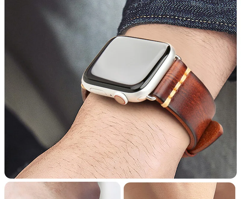 Ремешок ручной работы из коровьей кожи для Apple Watch Band 45 мм 41 мм 44 мм 40 мм 42 мм 38 мм Series 7 SE 6 5 4 3 iWatch Watch