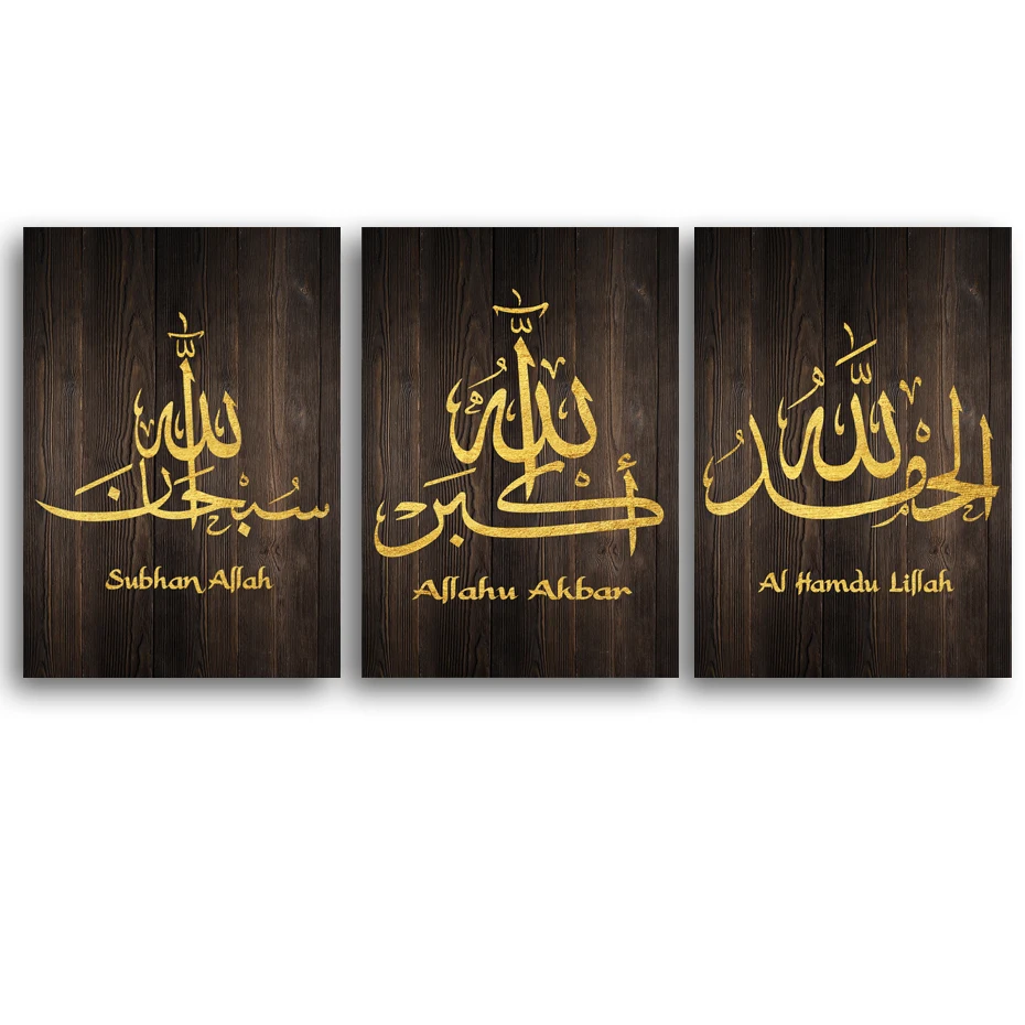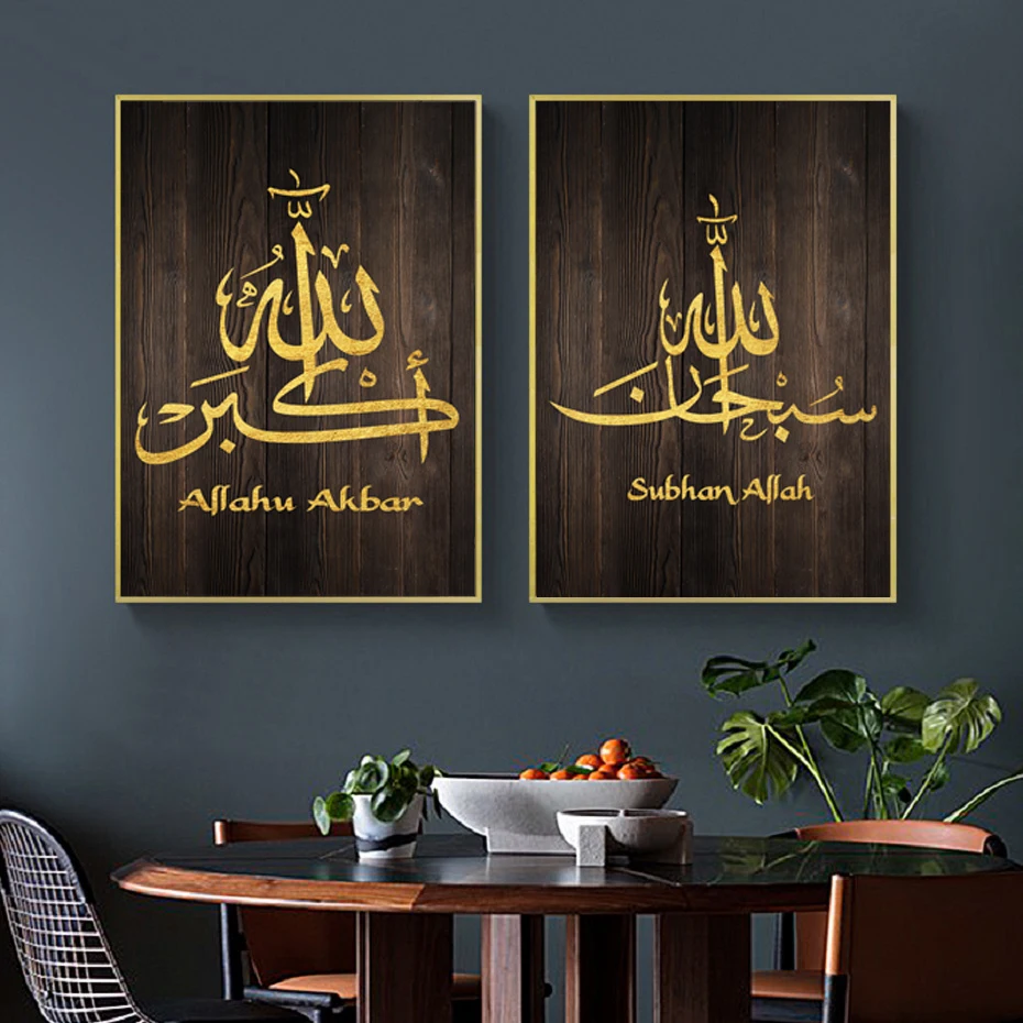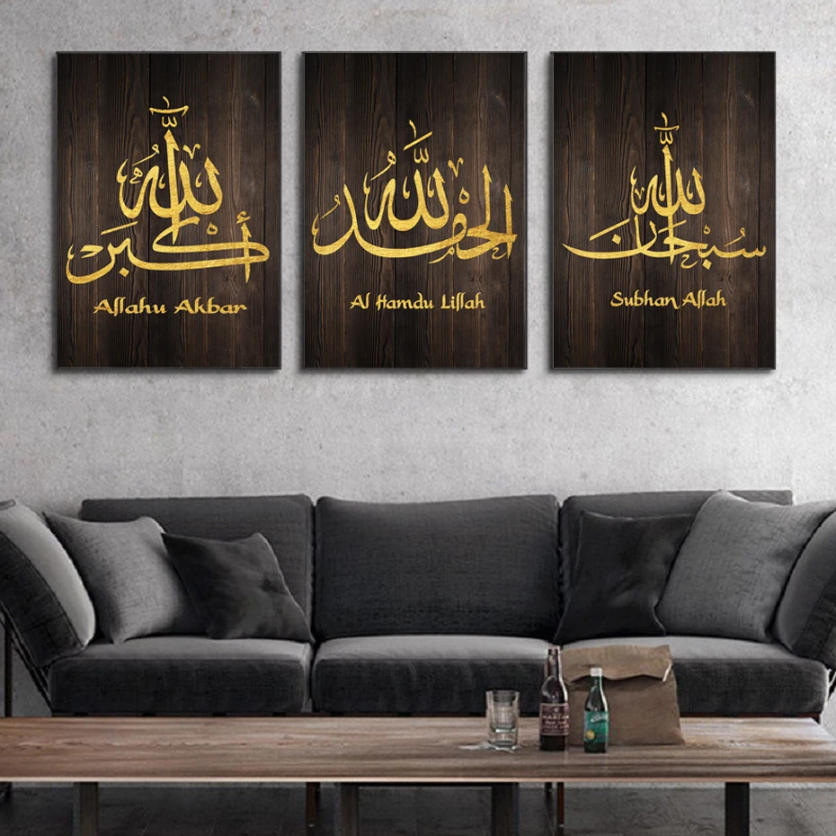 Скандинавская Золотая деревянная Исламская настенная Картина на холсте настенная печать картины каллиграфия художественные Плакаты для гостиной Рамадан Декор