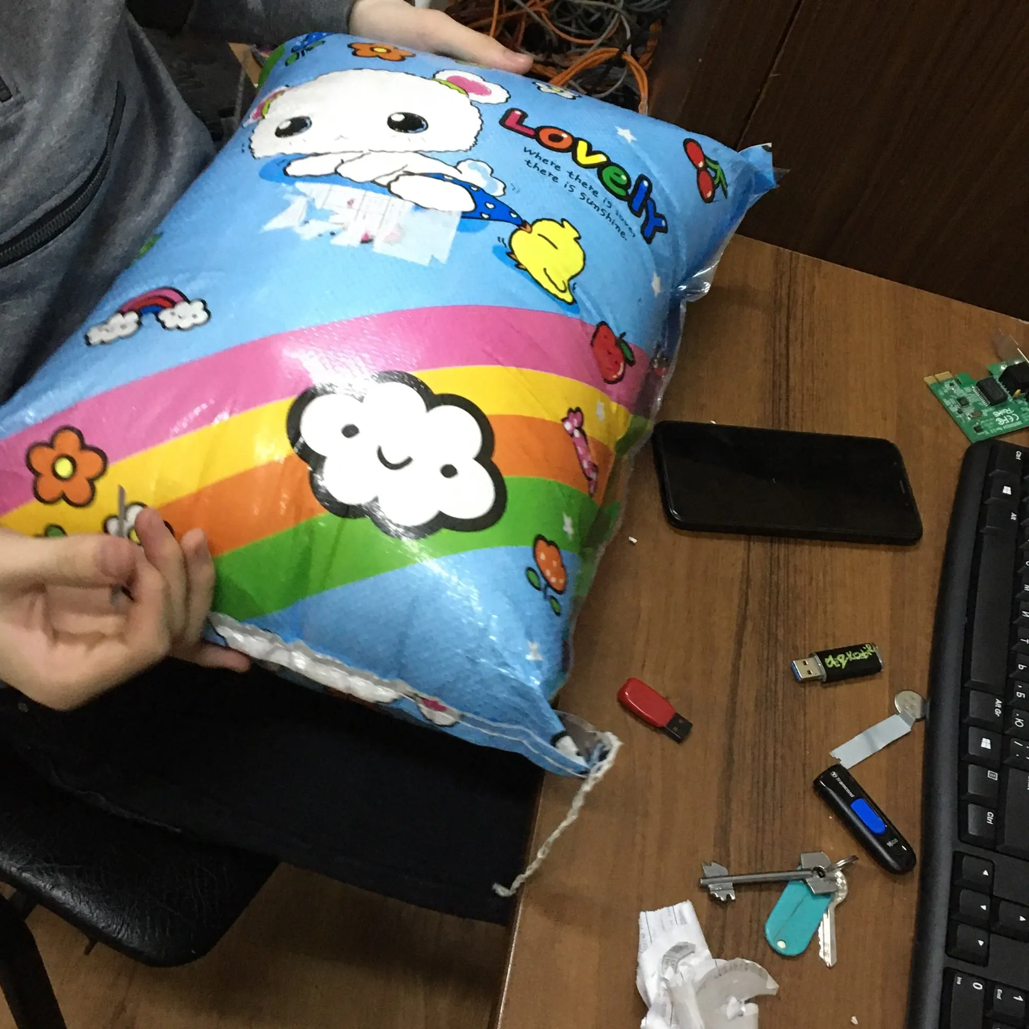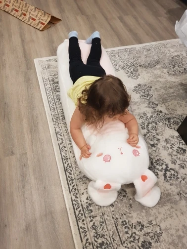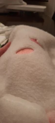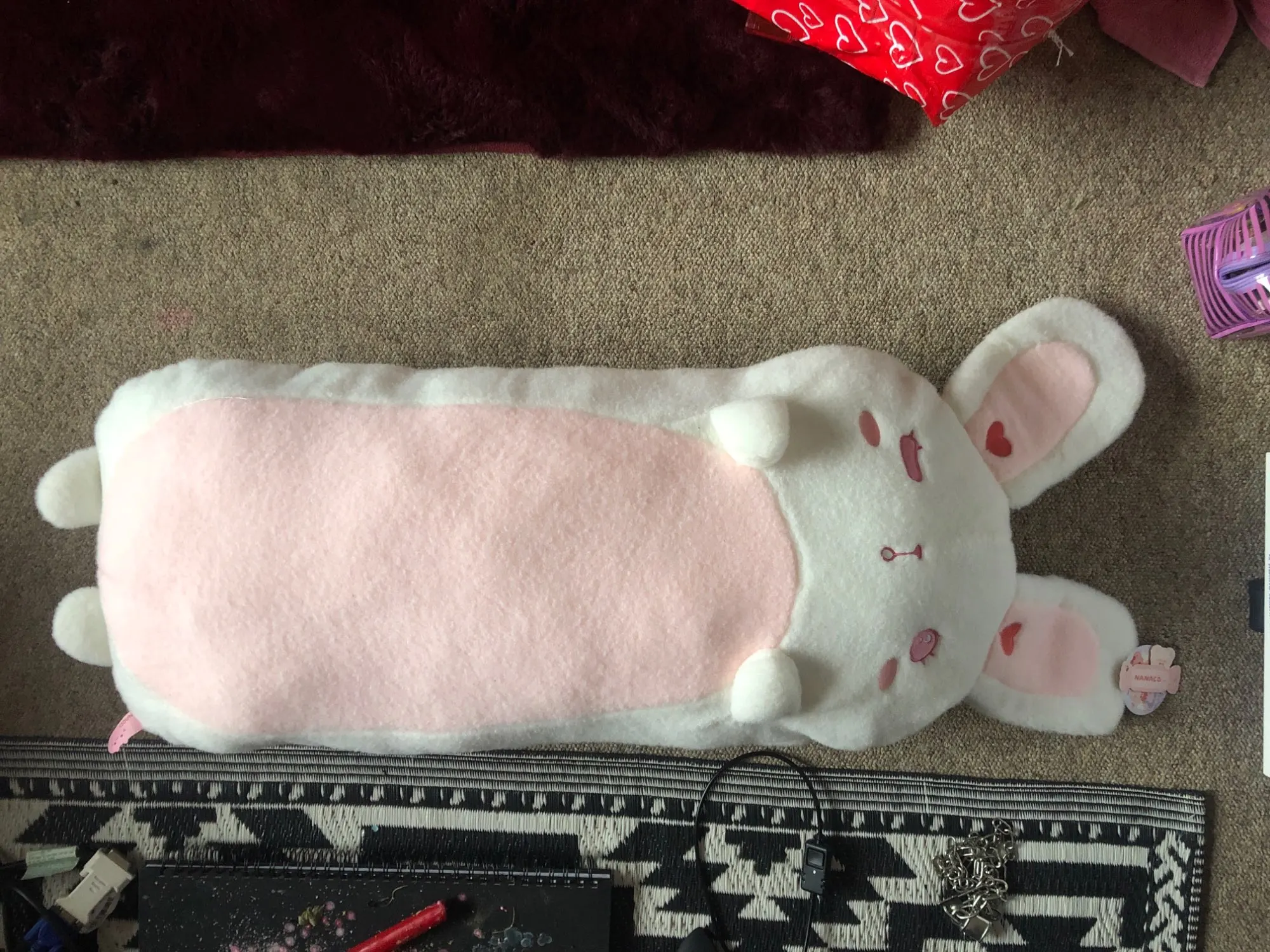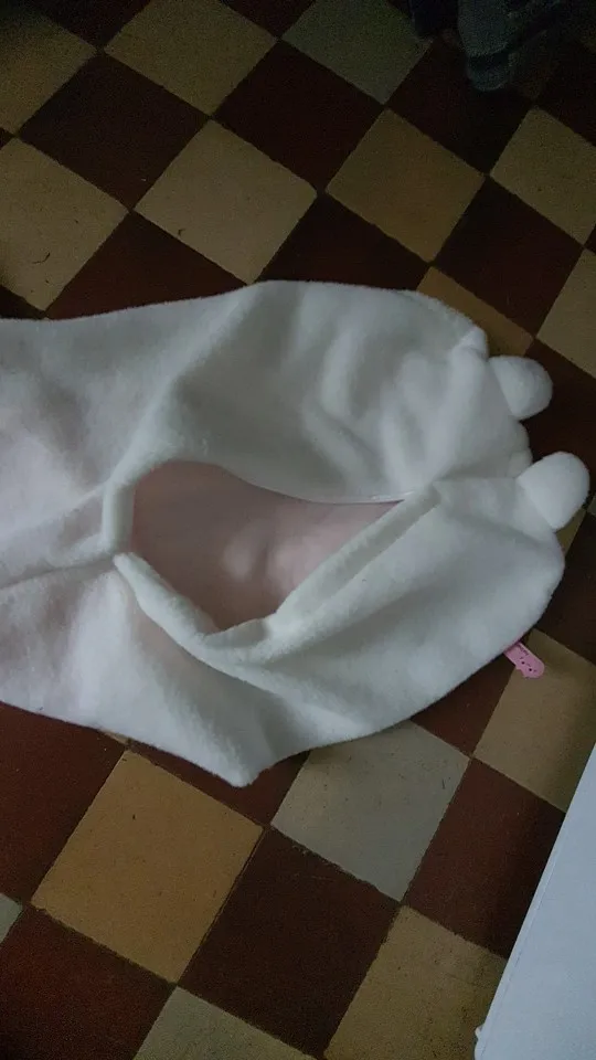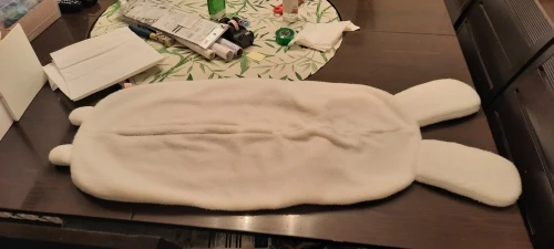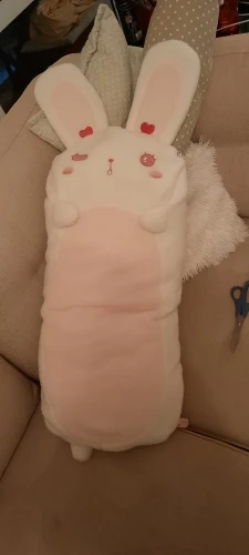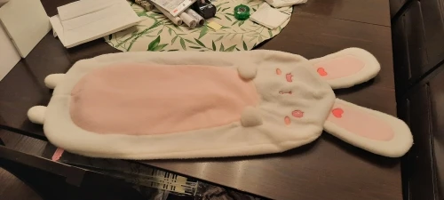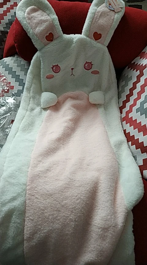 Мех не такой мягкий, как ожидалось (это войлочный материал), и наполнитель действительно сгущен из-за доставки. Но изображение кролика очень милое!