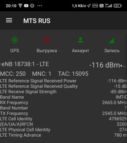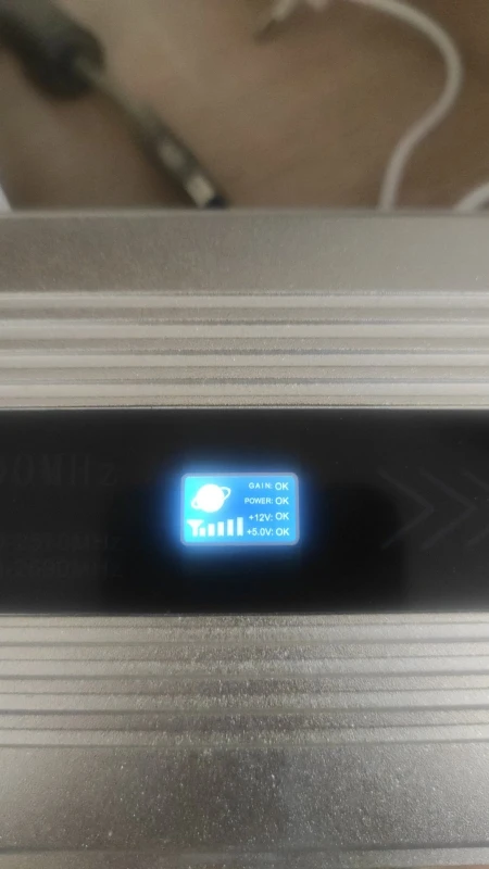 Устройство максимально усиливает на 58 dBm мощность сигнала, это если телефон лежит вплотную к комнатной антенне. А так в районе 2-3 метров держит сигнал, если дальше то мой телефон уже переключится на band 20 (800MHz). Устройство частично неисправное. У меня постоянно мигает 5 пустых полосок, как бы я не крутил наружную антенну. А вот если покрутить само устройство в руке. То в какой то момент ловит полный сигнал на 5 палок, но при этом в телефоне пропадает band 7! Стоит повернуть устройства под другим углом, то снова начинает мигать сигнал на его дисплее (5 пустых полосок), но при этом телефон снова ловит band 7. Наверное частичный брак в настройках его.