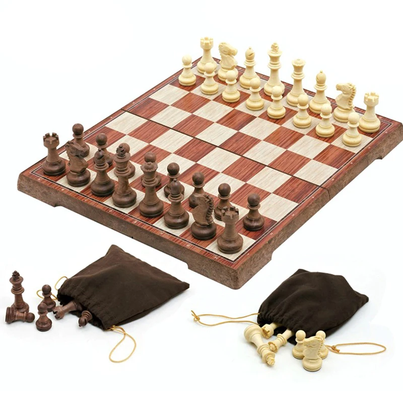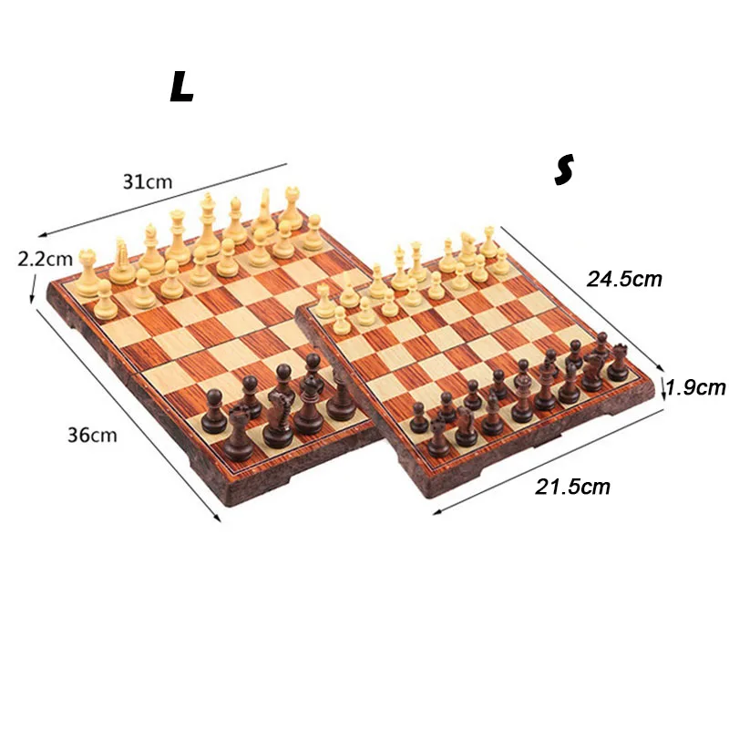 Шахматы складные магнитные с шахматной доской, 3 размера, для детей и взрослых, портативный дорожный набор, игрушка, 32 деревянные шахматные фигуры