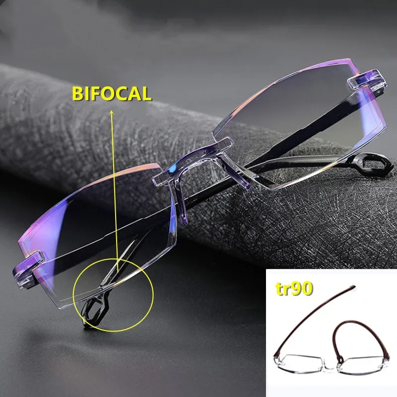 Высококачественные бифокальные анти синие очки для чтения портативные безободковые Мультифокальные пресбиопические очки увеличение алмазной резки Новинка