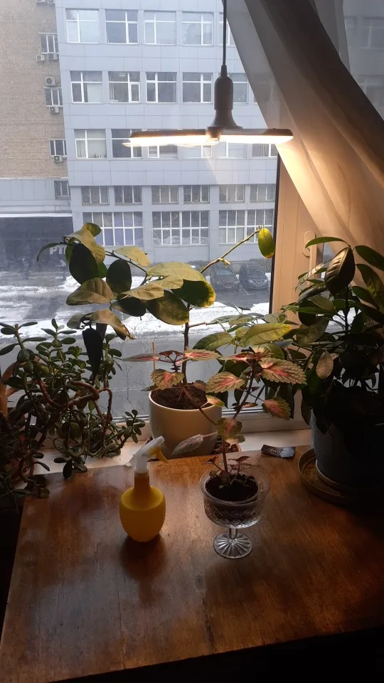 Лампы пришли быстро, оказалось сложно найти светильник или патрон , который может использоваться с лампой больше 60 вт. Но удалось найти здесь, на тимолле. Покупала лампу для лимона, который решил оставить этот бренный мир. Уже через неделю выпустил новые листочки и даже бутоны. У колеуса даже новые листья пошли другого цвета, больше похожи на те, которые на настоящем солнце