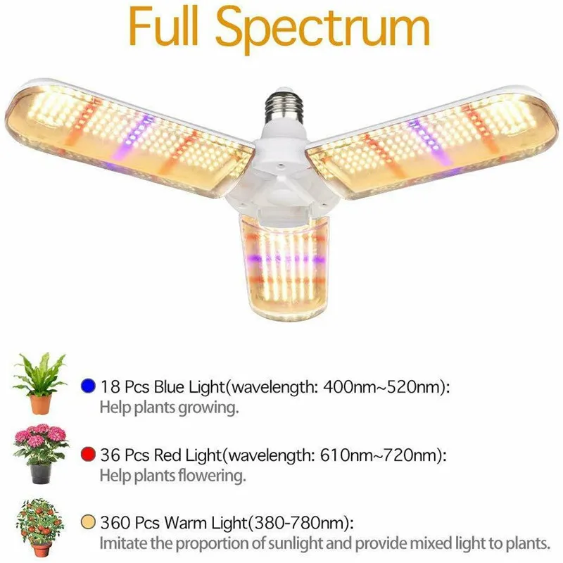Растения растут быстрее и цветок больше: Улучшенный спектральный выход покрывает полный пар (400-730nm) способствует фотосинтезу для роста