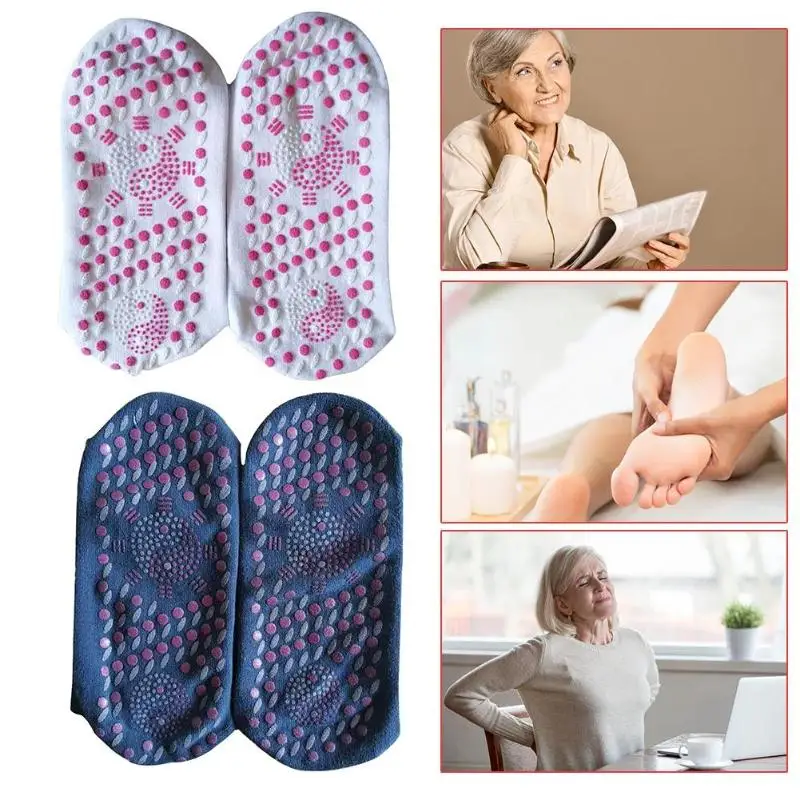 Самонагревающиеся турмалиновые терапевтические носки, зимний теплый массажер, физиотерапевтические носки, забота о здоровье ногОсобенности:1. Изготовлен из высококачественного полиэстера и хлопка, мягкий и удобный, имеет долгий срок службы.2. Нижняя часть носков имеет турмалиновый дизайн, который может самонагреваться и расслаблять ноги в холодную погоду.3. Турмалиновые носки снимают усталость ног, боль, регулируют нервную систему, самонагреваются, удаляют влагу и останавливают запах, устраняют отек ног и шелушение ног, производят статический массаж ног, регулирует кровоток.4. Идеальное средство для ног с варикозным расширением вен, а также при почечной недостаточности.5. Хорошая терапия лодыжек и стоп при обморожении.6. Для стимуляции акупунктурных точек. Ежедневное использование в любое время суток. Стирать под проточной теплой водой без моющих средств.7. Отлично подходит для активного отдыха: катания на лыжах, сноуборде, пеших прогулок, хоккея и других видов спорта.Спецификация:Материал: турмалин + полиэстер, хлопокЭффект: против усталости, массажные носки, Медицинские носки, Самонагревающиеся НоскиПодходящая длина стопы 23,1-27,5 см/9,09X10,83 дюймаЦвет: белый, синийПримечания:1. Из-за различий в мониторах и световых эффектах фактический цвет изделия может немного отличаться от цвета, показанного на фотографиях. Спасибо!2. Возможны отклонения в 1-3 мм из-за измерений вручную.