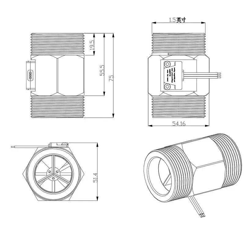 Датчик расхода турбины водяного Холла S304 5-промышленный счетчик лмин DN40 1,5 дюйма DC5V-24V