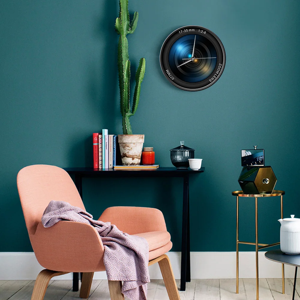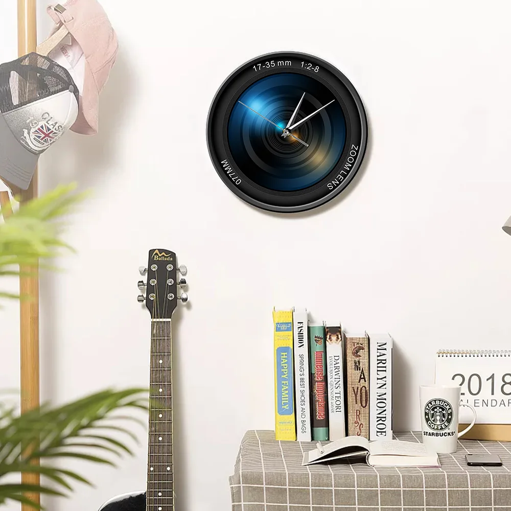 Акриловые настенные часы с объективом камеры, фотография, масштабирование, цветное фото, ISO экспозиция, персонализированные современные настенные часы, камера, подарок мужчине