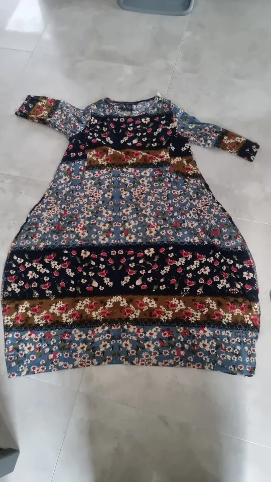 Винтажное платье-макси с принтом, женский весенний сарафан ZANZEA 2022, повседневное длинное платье с рукавом 34, Женский льняной халат с цветочным принтом