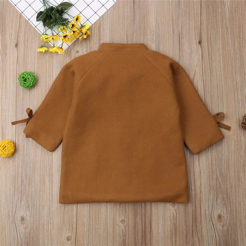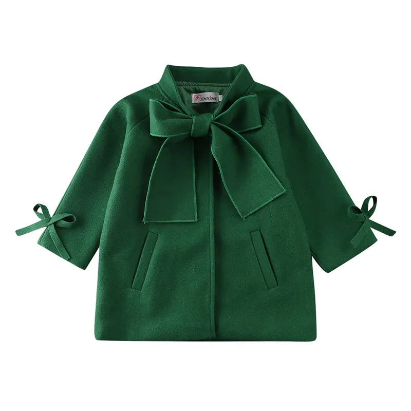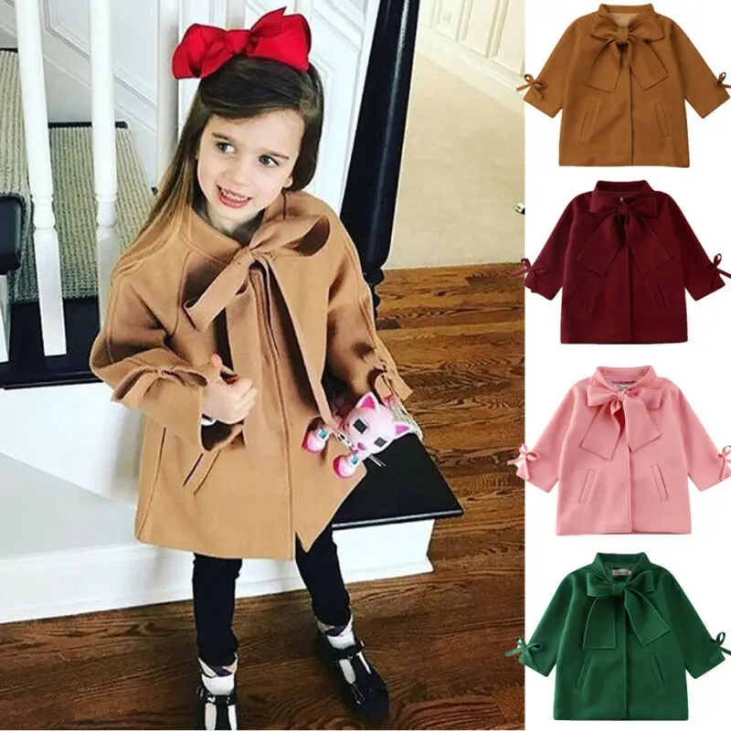 Зимнее пальто для маленьких девочек 2-8 лет, теплый шерстяной плащ с бантом для маленьких девочек, Детское пальто с длинным рукавом, верхняя одежда для девочек, куртка