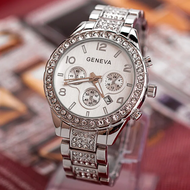 Женские часы Geneva с браслетом, Роскошные наручные часы из нержаве...