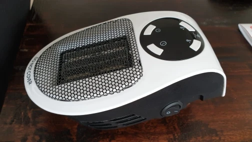 Хороший тепловентилятор, нагревает небольшое помещение в течении 15 минут,сам включается на охлаждение, можно настроить по таймеру, будет включаться и выключаться по времени