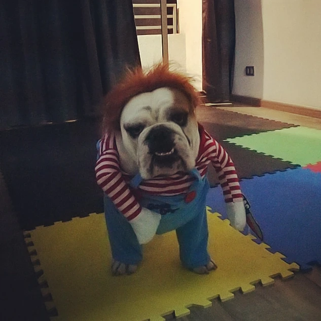 Забавная Одежда для собак, костюм для косплея на Хэллоуин, Рождество, комические наряды с набор париков, одежда для вечеринок