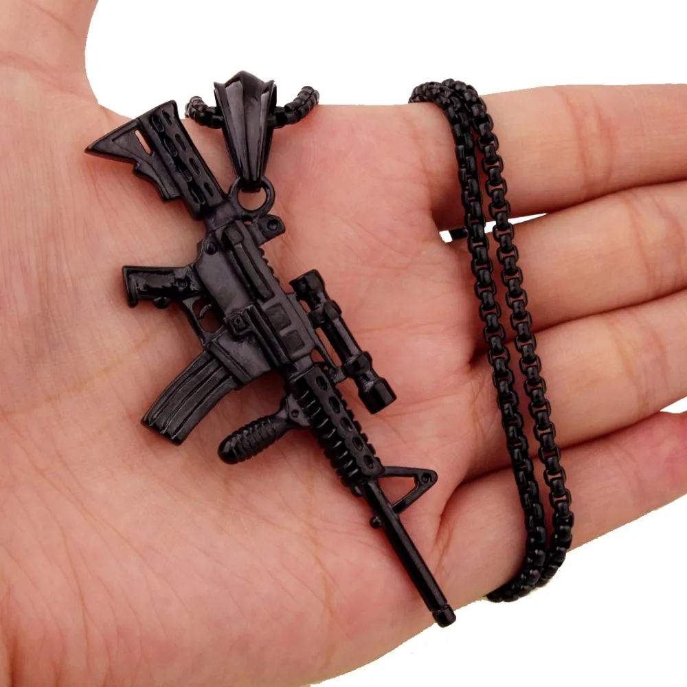Цепочка с подвеской в виде снайперского пистолета PUBG Playerunknown's, цепочка из нержавеющей стали золотого и черного цвета, ожерелье с подвеской в виде пистолета из игры M416, ювелирные изделия