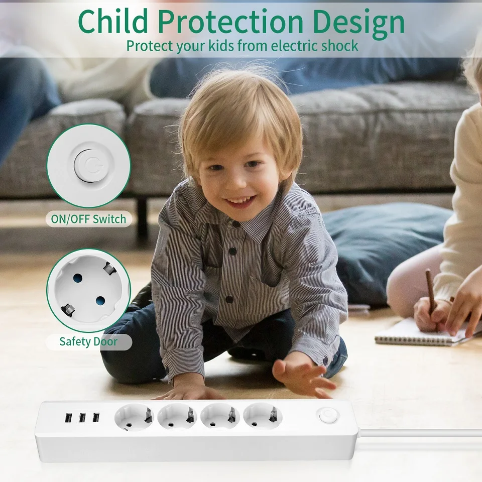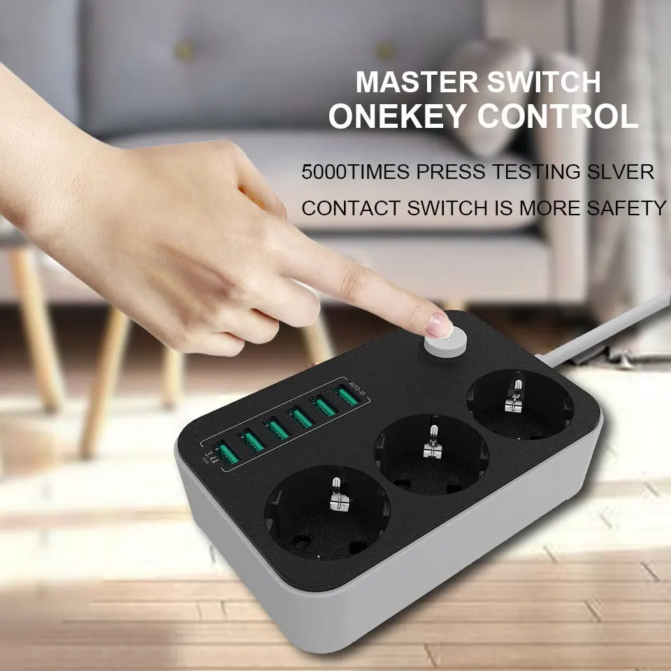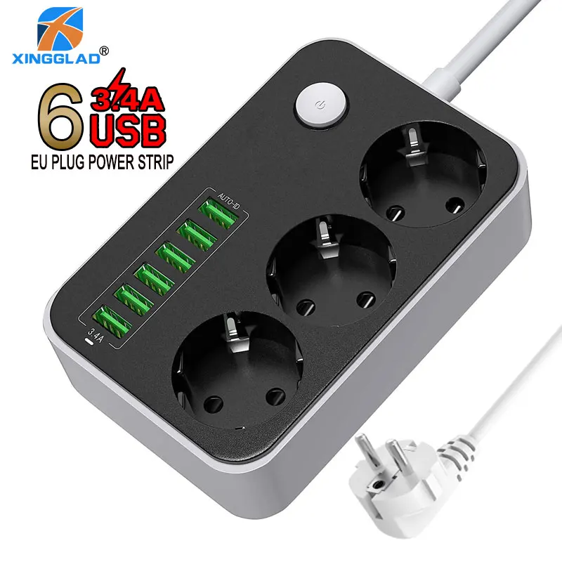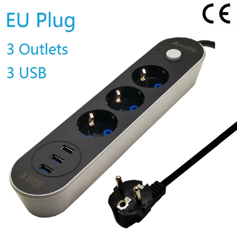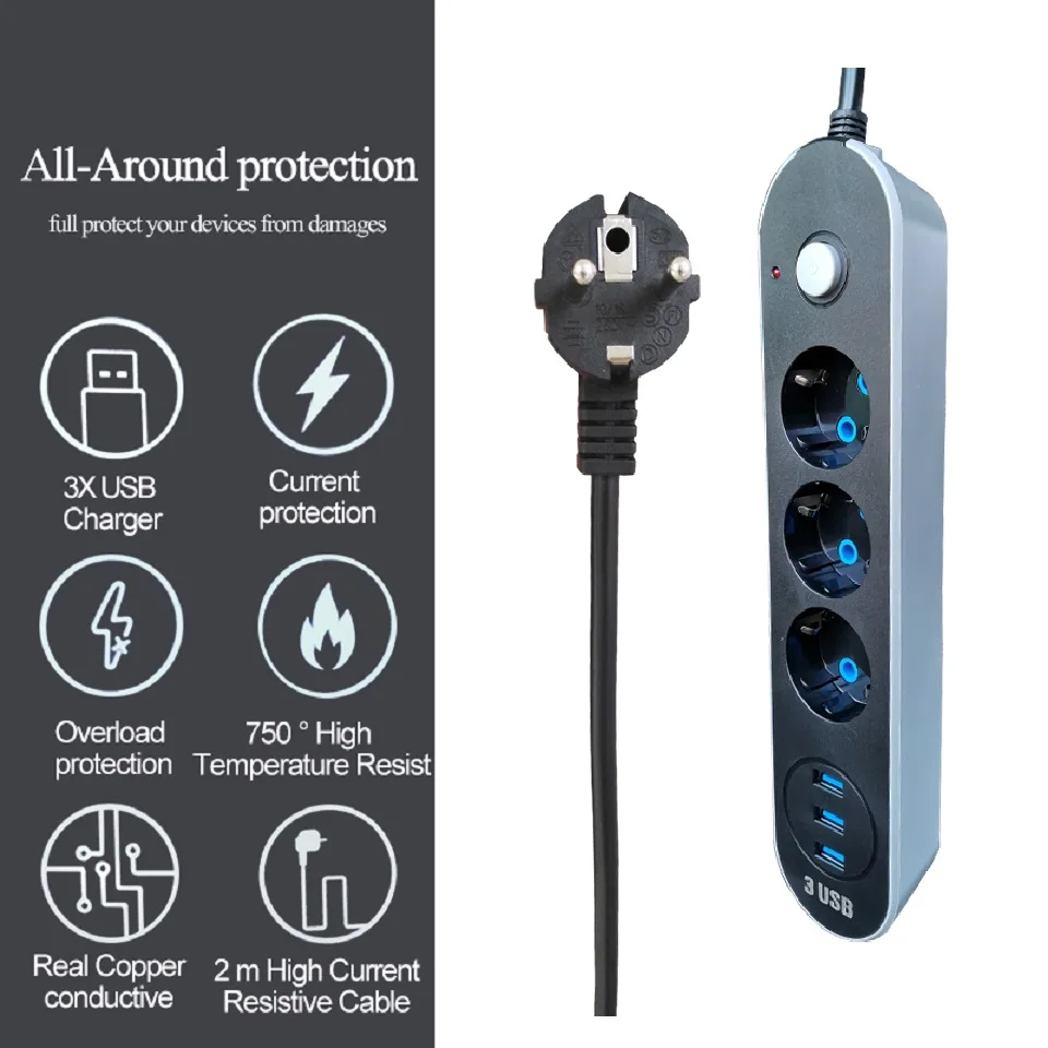 Удлинитель с вилкой европейского стандарта, USB-удлинитель, универсальный сетевой выключатель, шнур 1,6 м, 2 м, сетевой фильтр для телефонов