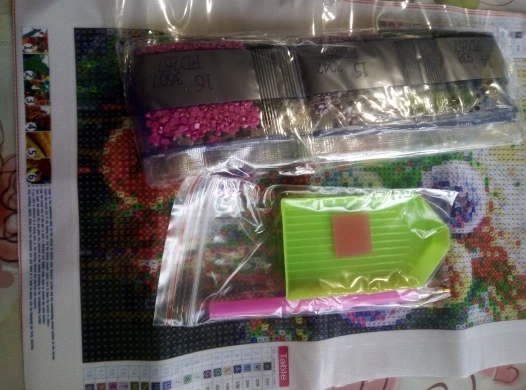 Пришла раньше срока. Описанию соответствует, только я думала, что алмазики будут крупнее. Бабушке приходится работать с лупой.