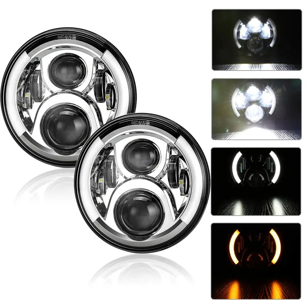 7 "круглый светодиодный фары для автомобиля Белый DRLжелтый сигнал ...