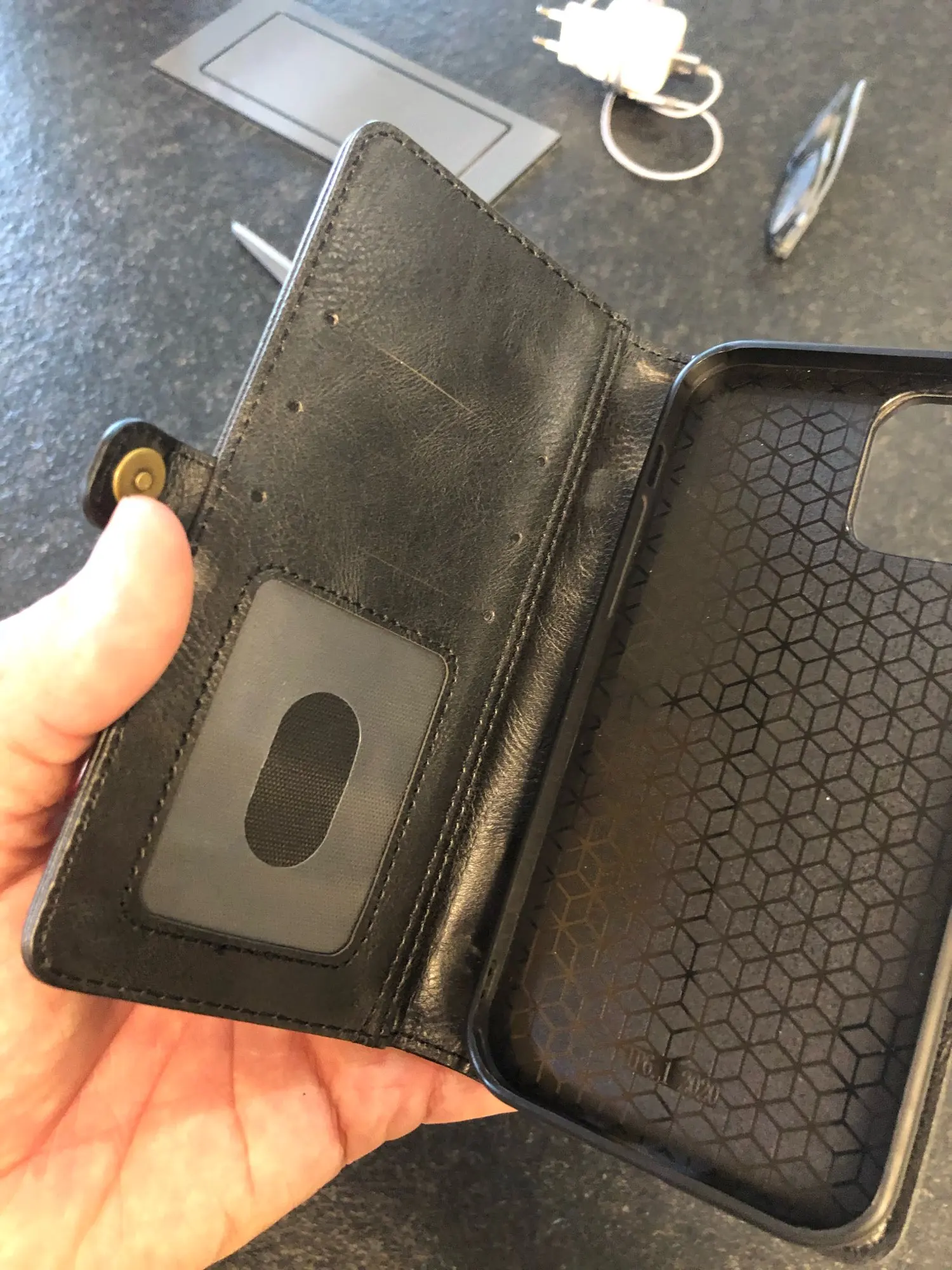 Даже если вы удалите чехол для смартфона, вы не можете заряжать его беспроводным способом. Есть много отделений для карт, но если вы вставляете слишком много карт, крышка не закроется.