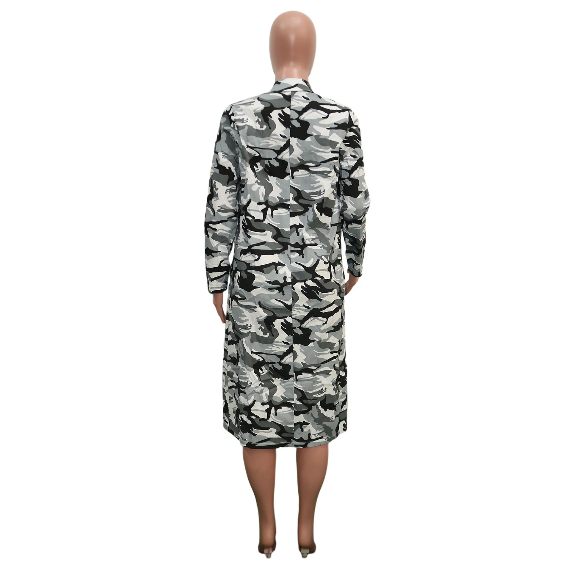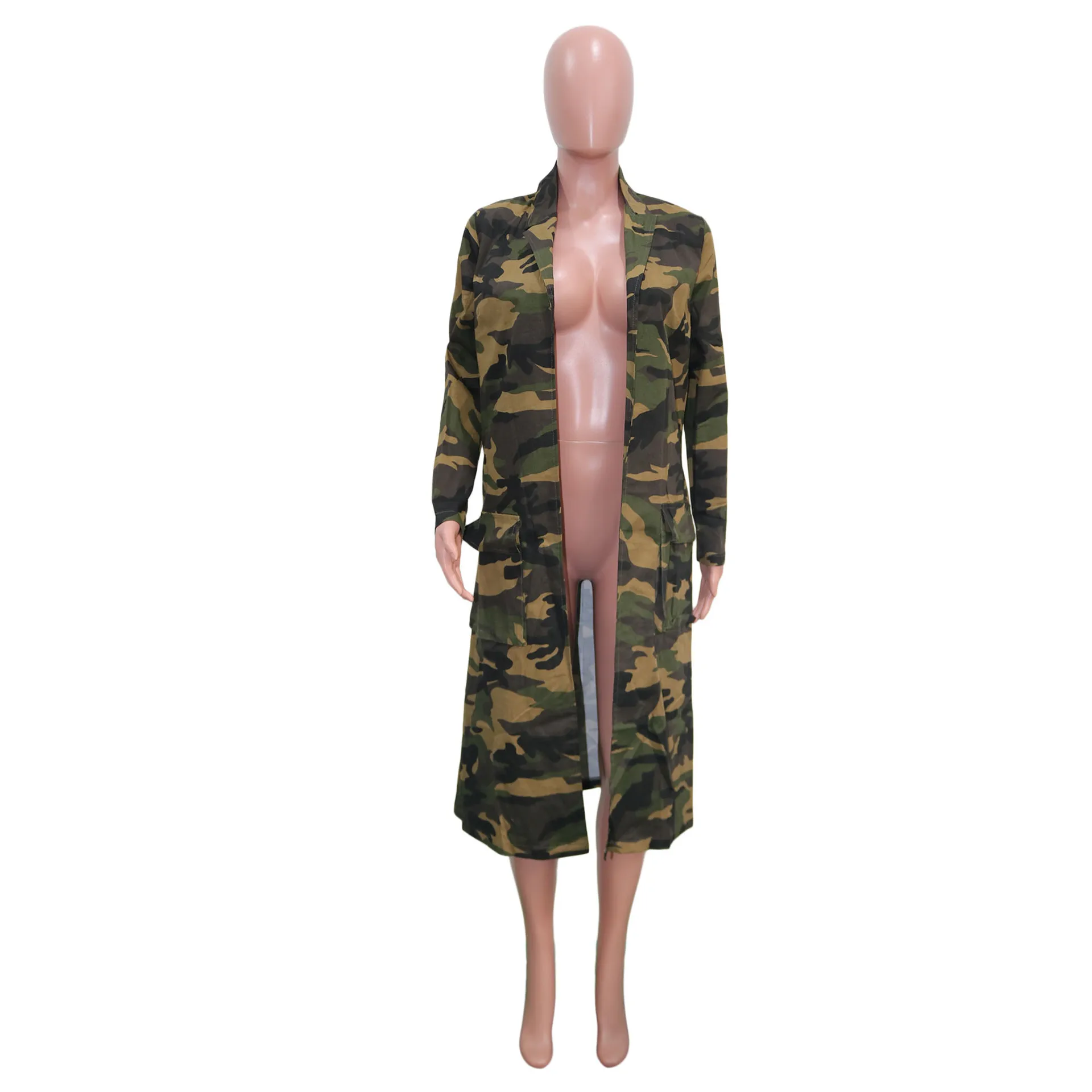 Длинный женский кардиган с камуфляжным принтом, уличная одежда с дл...
