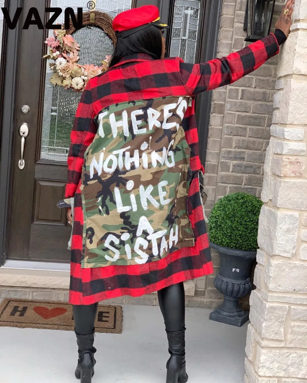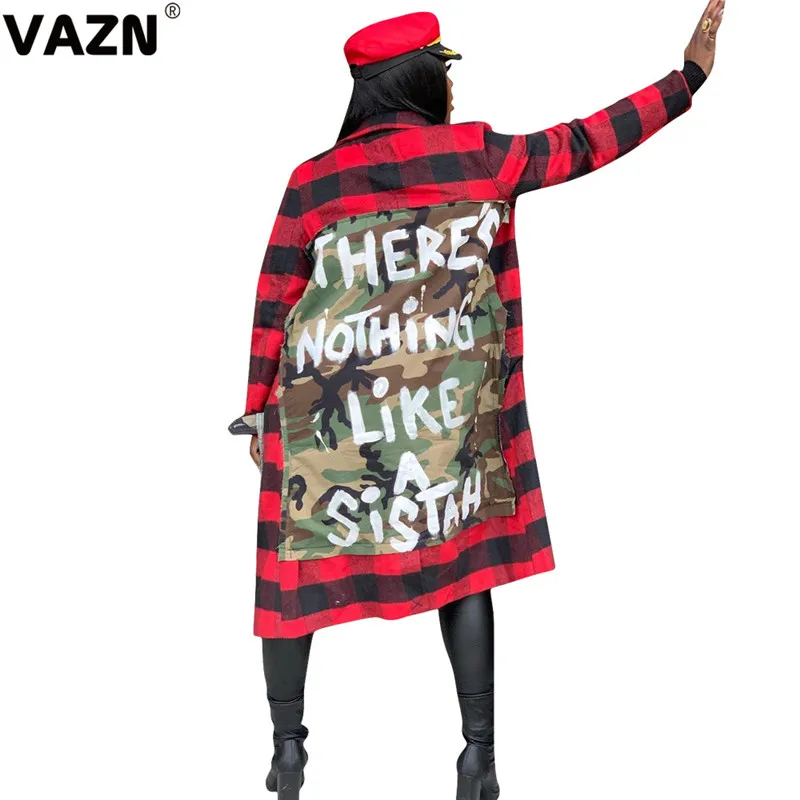 Пикантное красное клетчатое пальто VAZN нового дизайна 2020, женское длинное пальто в стиле Хай-стрит с длинным рукавом для ночного клуба