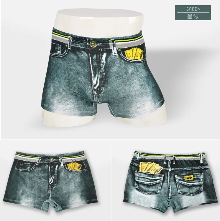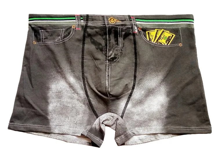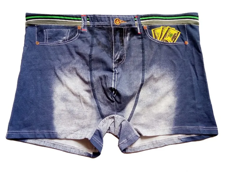 Трусы-боксеры мужские джинсовые 3D с выпуклым гульфиком, модное Брендовое нижнее белье