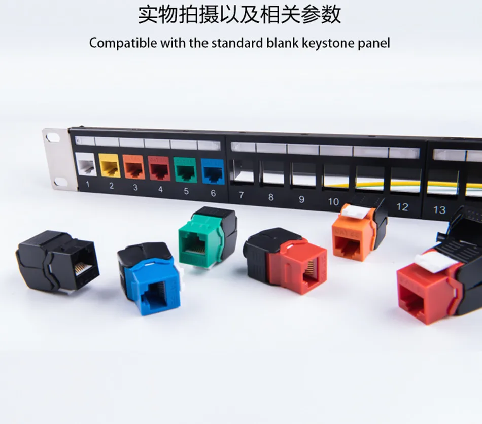 1. Название продукта: цветной обжимной модуль RJ452. Цвет: красный, белый, зеленый, оранжевый, черный, синий, желтый3. Долговечность: штекер> 750 раз, завершение> 250 раз4. Интерфейс: штекер RJ-45,8P8C5. Материал: АБС-пластик с низким содержанием дыма, без галогенов, импортный материал6. Материал контакта: фосфористая бронза с позолотой 15u7. Клемма IDC: никелированная безинструментальная Клемма, не требует пробивки8. Диаметр проволоки: 23AWG-26AWG 0,4-0,6 мм9. Сертификация продукции: тестовая Сертификация US Fluke10. Подходит для: Установите на лицевую панель или пустую патч-панель Примечание:1. Если вы используете трапецеидальное гнездо на лицевой панели или стене.2. Убедитесь, что глубина нижней стенки коробки должна быть не менее 40 мм.