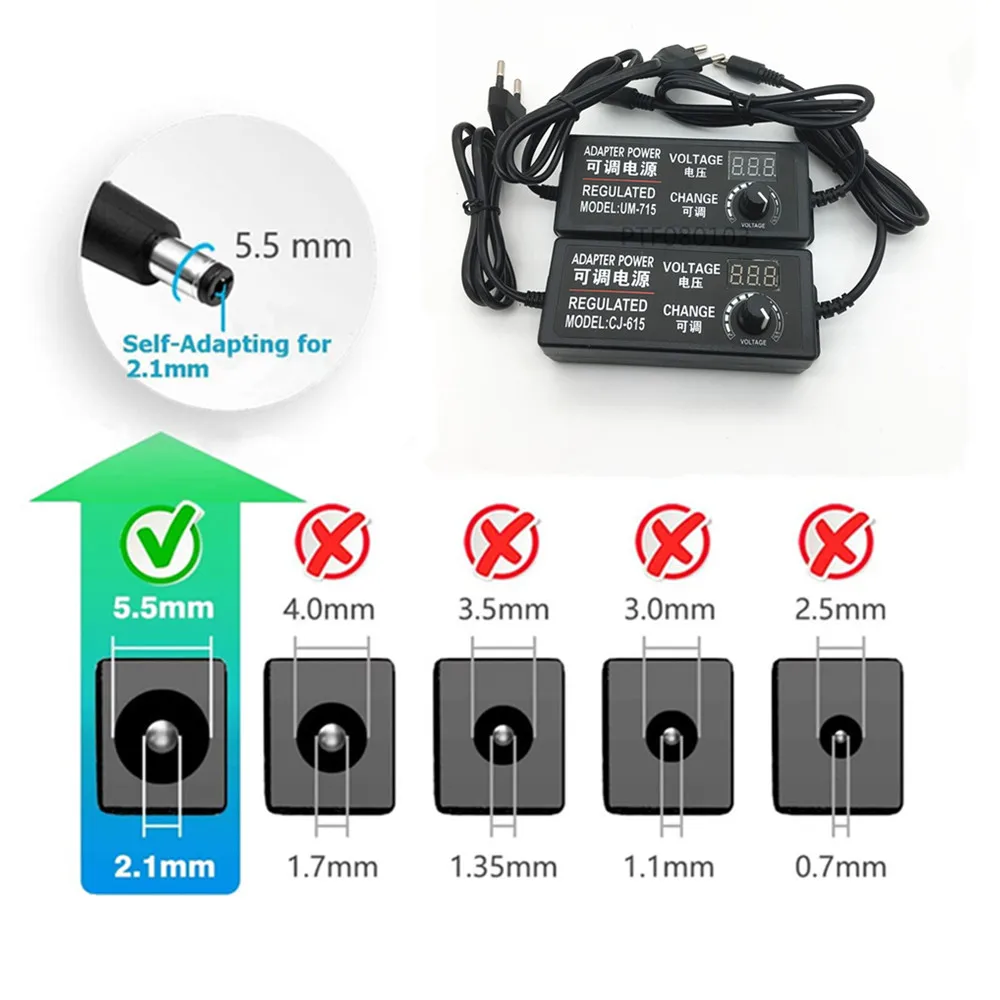 Универсальный адаптер питания с дисплеем, Регулируемый адаптер напряжения переменного тока в постоянный ток 3-12 В, 3-24 В, 9-24 В, 3 в, 12 В, 24 В