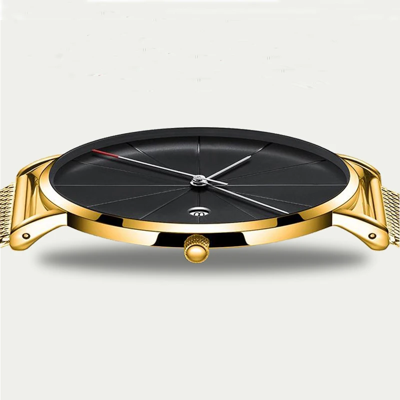 Часы наручные женские ультратонкие, люксовые, с браслетом из розового золота