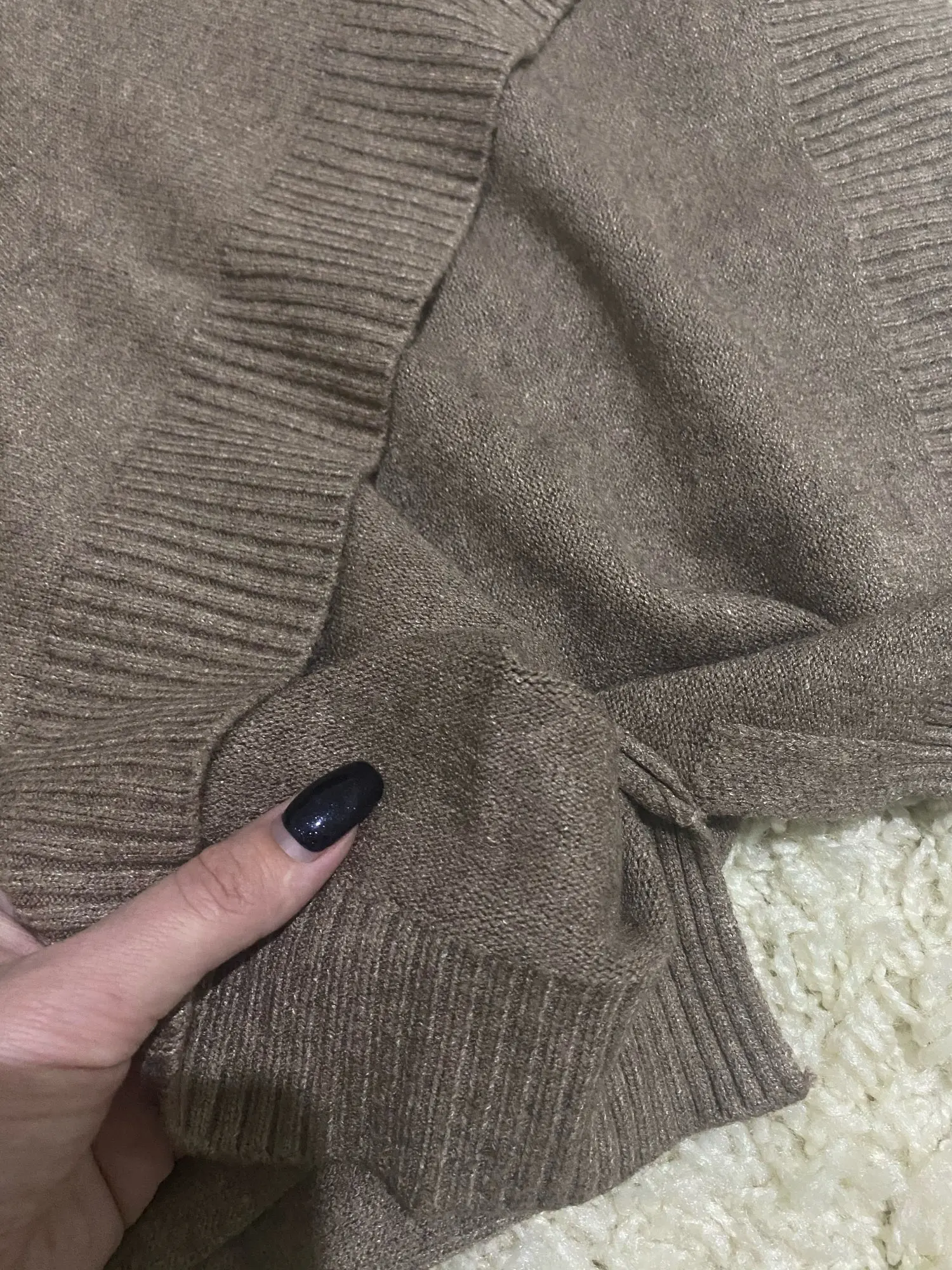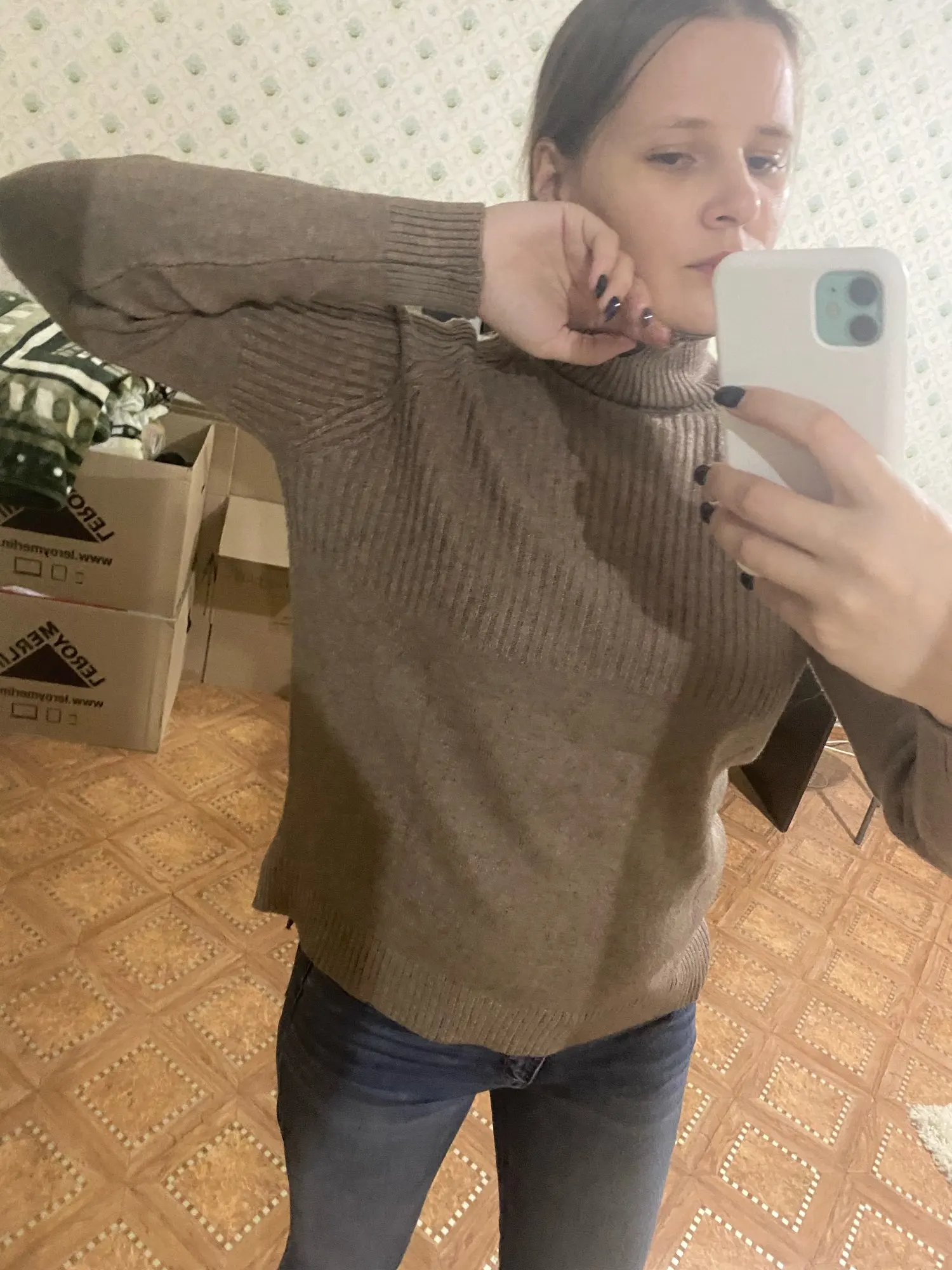 отличный свитер,очень мягкий,на 48 российский брала XL, самое то ,цвет хаки похож на светлый какао