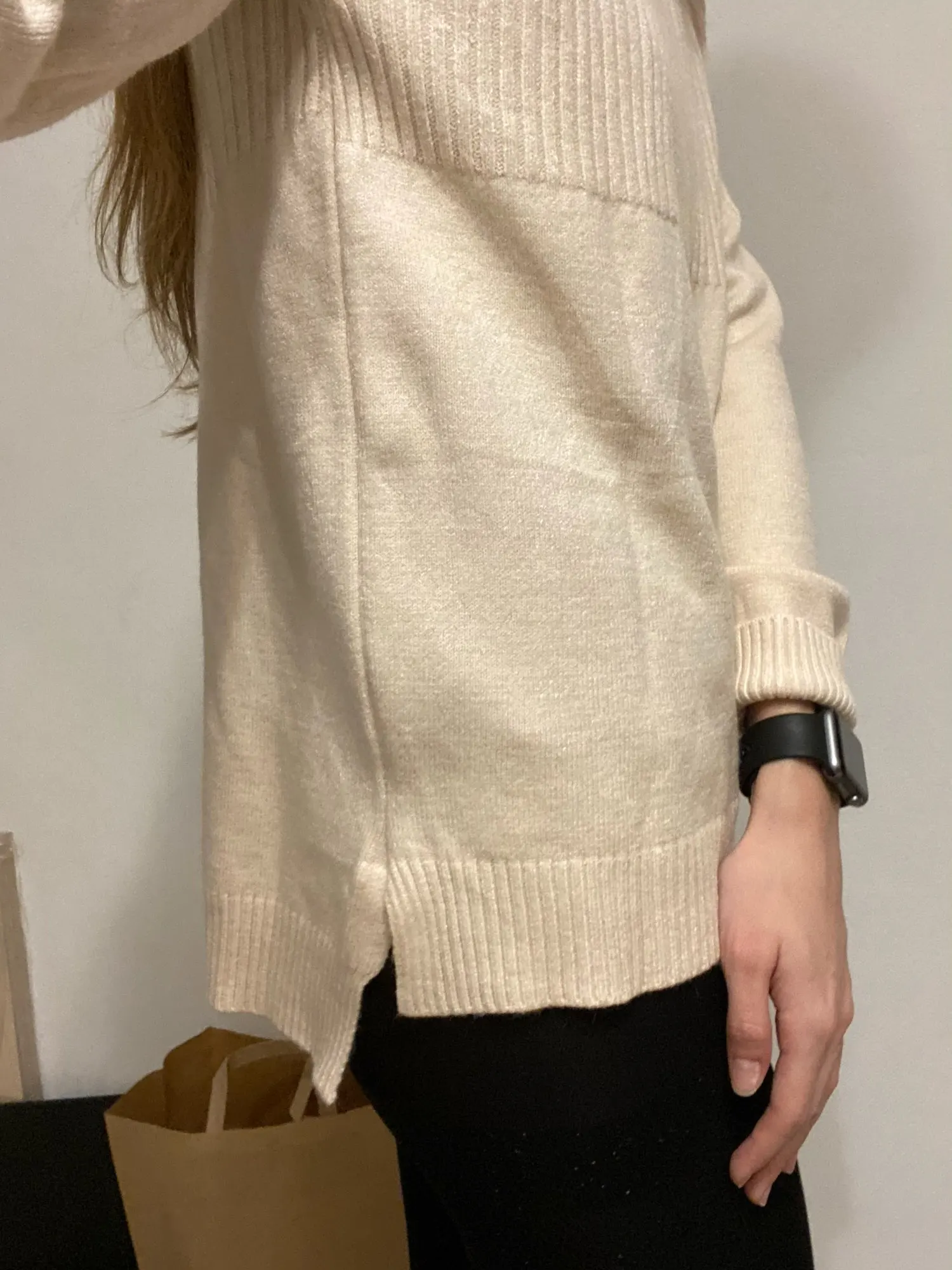 ооооочень хороший свитер!!❤ в точности как на картинке, цвет не желтит, больше наверно даже с розовинкой. Тяжелый, тянется, мягкий, ярлычков нет, так что не понимаю, что за ткань, не думаю, конечно, что прям натуральная, но очень качественная и приятная!! не тряпка)) думаю, даже придется стирать руками или деликатной стиркой(вдруг растянется)... свитер сам по себе оверсайз, так что берите в размер, я на рост 154 и ОГ 90 взяла S, и норм - и по ширине, и по длине(сзади немного длиннее, чем спереди) ворот очень хорошо обработан, но сбоку есть большой шов, так что если носить так, как на моделях, может бросаться в глаза, но мне не критично)) вот. доставка быстрая, чуть меньше 3х недель, упакован качественно(в пакет с собачкой), запаха почти нет. Очень довольна покупкой!!!❤