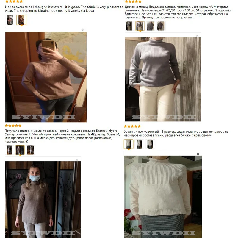 Свитер соответствует описанию. Все швы ровные, никаких торчащих ниток. Упаковано аккуратно. Хотелось бы чуть побольше, чтобы оверсайз, а так буду носить, как водолазку. К телу очень приятная ткань, нигде не колется, что для меня очень важно. Большое спасибо Продавцу, успехов и процветания, буду заказывать ещё в этом магазине. Спасибо Али.